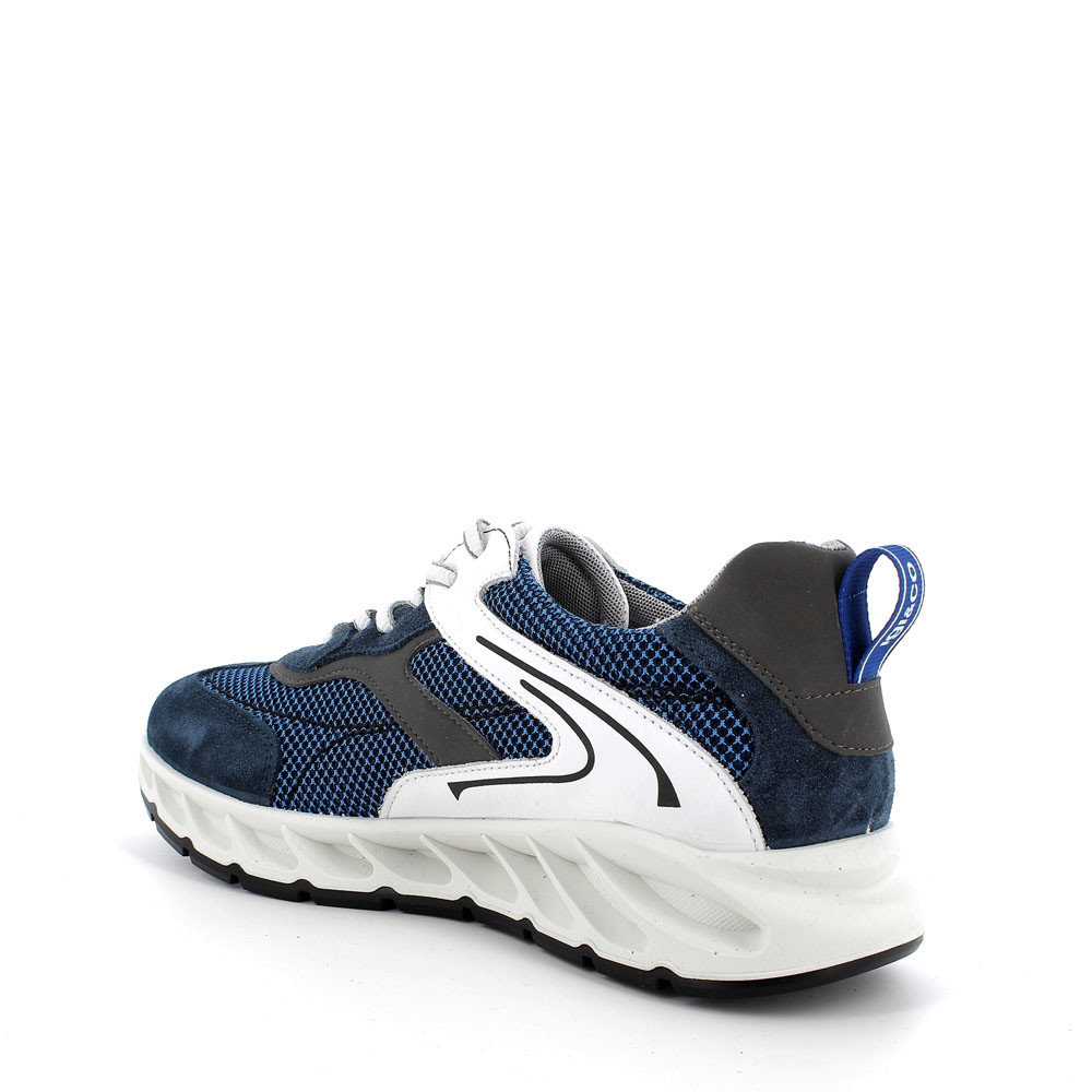 SNEAKER DALLE LINEE SPORT-ACTIVE IN PELLE E TESSUTO MESH BICOLORE. GRINTOSA E DINAMICA, GARANTISCE MASSIMO COMFORT DI INDOSSO GRAZIE ALLA LEGGEREZZA E FLESSIBILITÀ DELLA SUOLA ERGONOMICA E CONTEMPORANEA. SI CALZA FACILMENTE MEDIANTE IL TIRANTE POSTERIORE E SI REGOLA ALLA PERFEZIONE ATTRAVERSO LE STRINGHE. IL SOTTOPIEDE ESTRAIBILE IN MEMORY FOAM È PRATICO E IGIENICO.