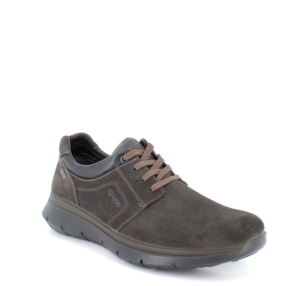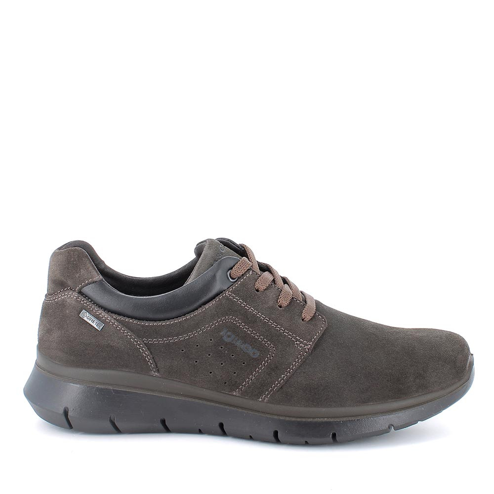 Una scarpa da uomo in scamosciato che convince grazie alle sue linee semplici e contemporanee. Queste sneakers basse con tecnologia Gore-Tex sono studiate per chi non sopporta le costrizioni ma teme l'inverno. Le imbottiture intorno alla caviglia assicurano comodità e le stringhe permettono una perfetta regolazione. Il plantare estraibile in memory foam è rivestito in pelle e assicura ammortizzazione proteggendo il piede dalle sollecitazioni.
