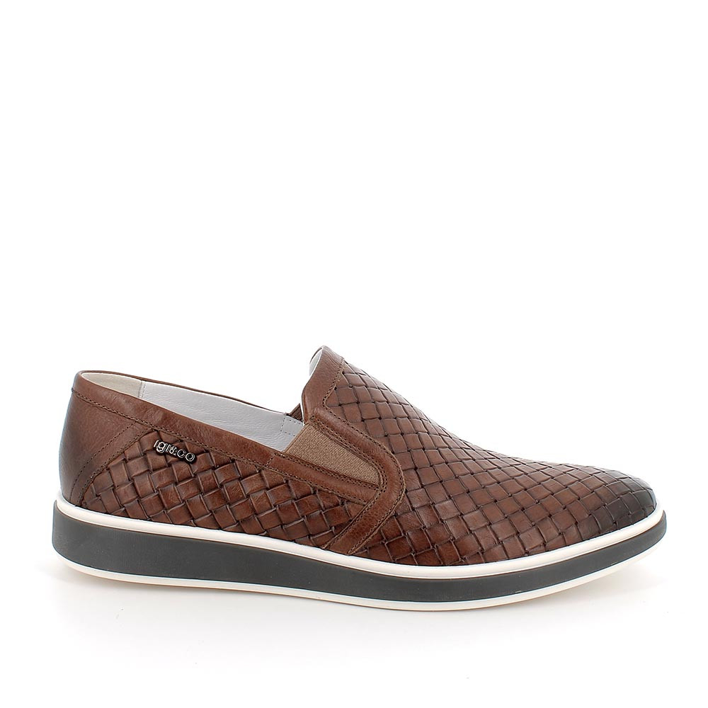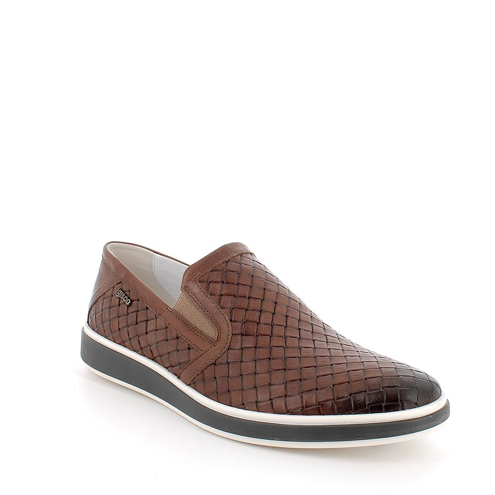 Le scarpe slip on da uomo sono un'opzione molto comoda che permette di infilarle e sfilarle rapidamente. Gli inserti elastici rendono anche più piacevole indossarle per tutta la giornata. Queste calzature sono realizzate in pelle ad effetto intreccio ed hanno un design semplice e lineare. La suola, leggera e flessibile, dona carattere e personalità. Il sottopiede anatomico è estraibile e rivestito in pelle per assicurare traspirabilità e igiene.