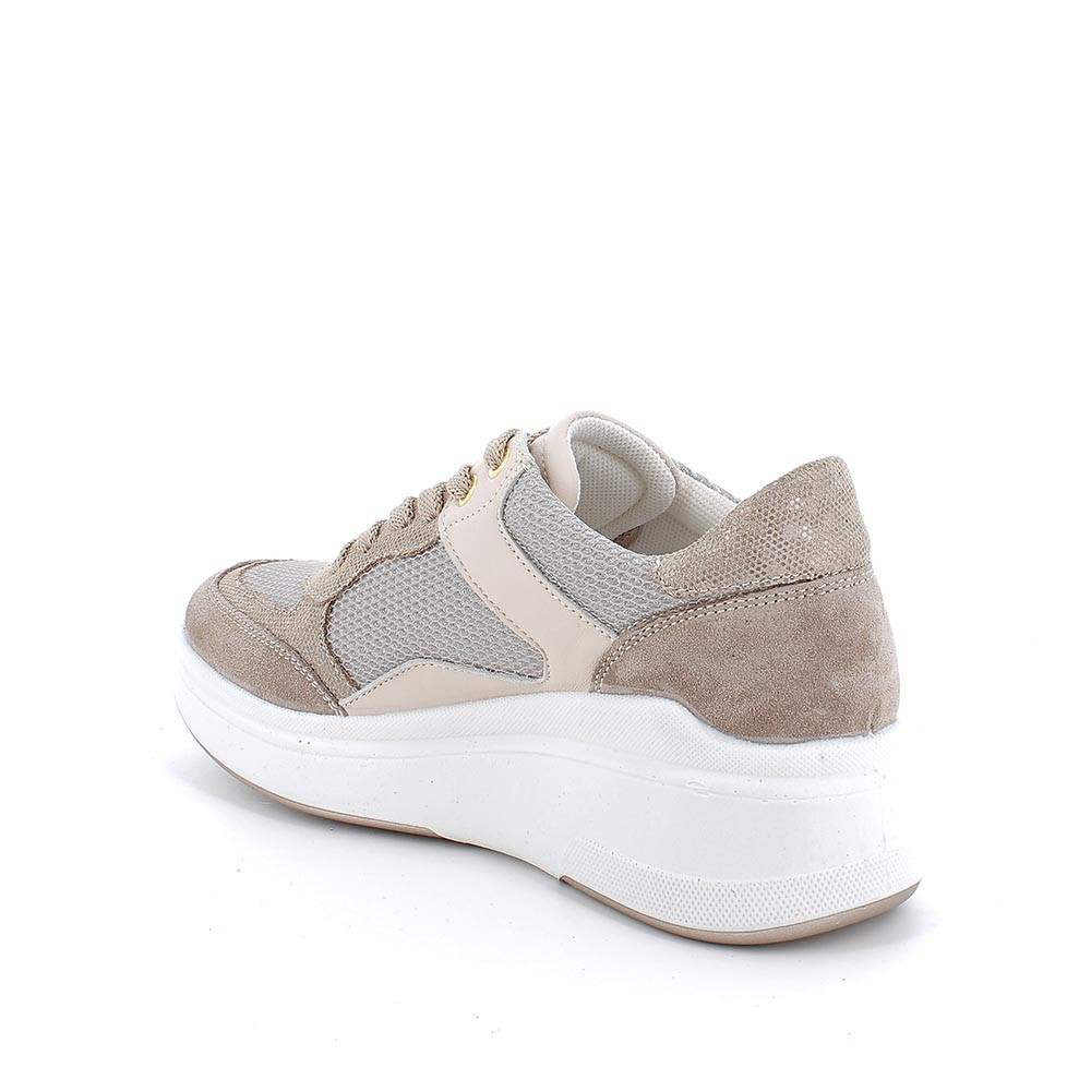 Le sneakers possono completare innumerevoli outfit di una donna ed accompagnarla sia nel tempo libero che nelle occasioni speciali. Queste regalano una immagine sobria e centimentri in più. Le stringhe permettono una perfetta regolazione e la suola a zeppa offre grande sostegno e isolamento dalle asperità del suolo. Il sottopiede anatomico è estraibile e rivestito in pelle per assicurare traspirabilità e igiene.