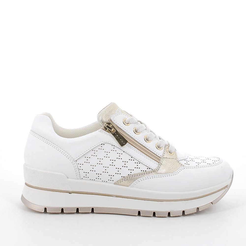 Sneakers donna per essere alla moda e comode in ogni situazione. Rappresentano la soluzione ideale per chi è alla ricerca di un livello superiore di comfort senza rinunciare a un'estetica disinvolta e a dettagli ricercati. La tomaia in stile running è dotata di una zip esterna che permette anche un indosso immediato. Il plantare estraibile in memory foam è rivestito in pelle e assicura ammortizzazione proteggendo il piede dalle sollecitazioni.