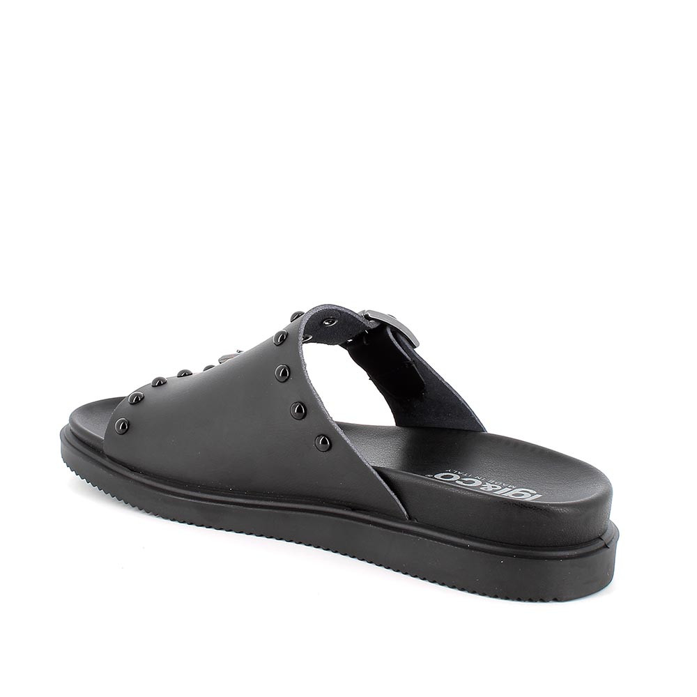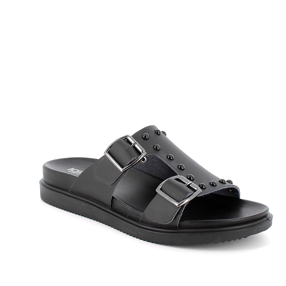 Le ultime tendenze per l'estate vedono le ciabatte come delle calzature da abbinare a qualsiasi outfit cittadino e vacanziero. E' importante che non siano soltanto comode, ma anche di carattere, per poter regalare quel tocco in più. Questo modello con doppio cintino è personalizzato con borchiette tono su tono, per farsi notare con discrezione. Il piede appoggia su un plantare conformato a pianta ampia, per un maggiore comfort. Il battistrada della suola è ondulato per aumentare il grip.