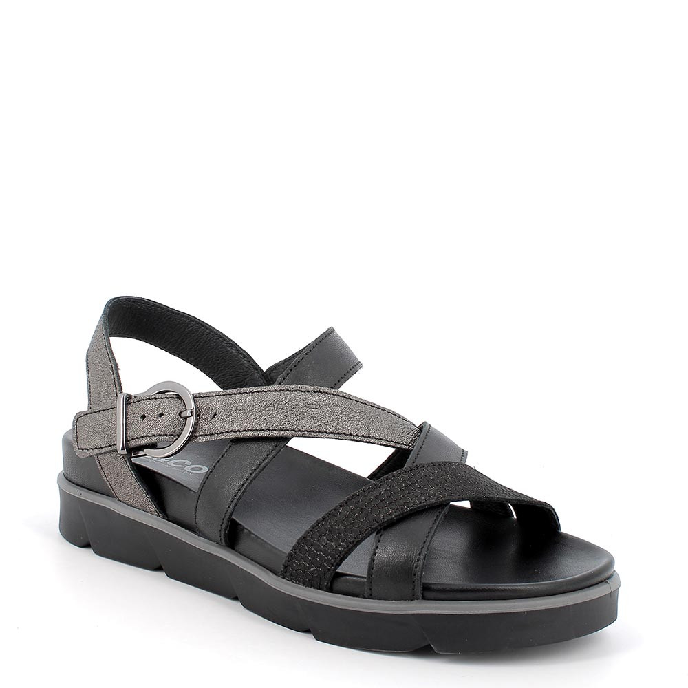 Sandalo in pelle da donna carbone-nero