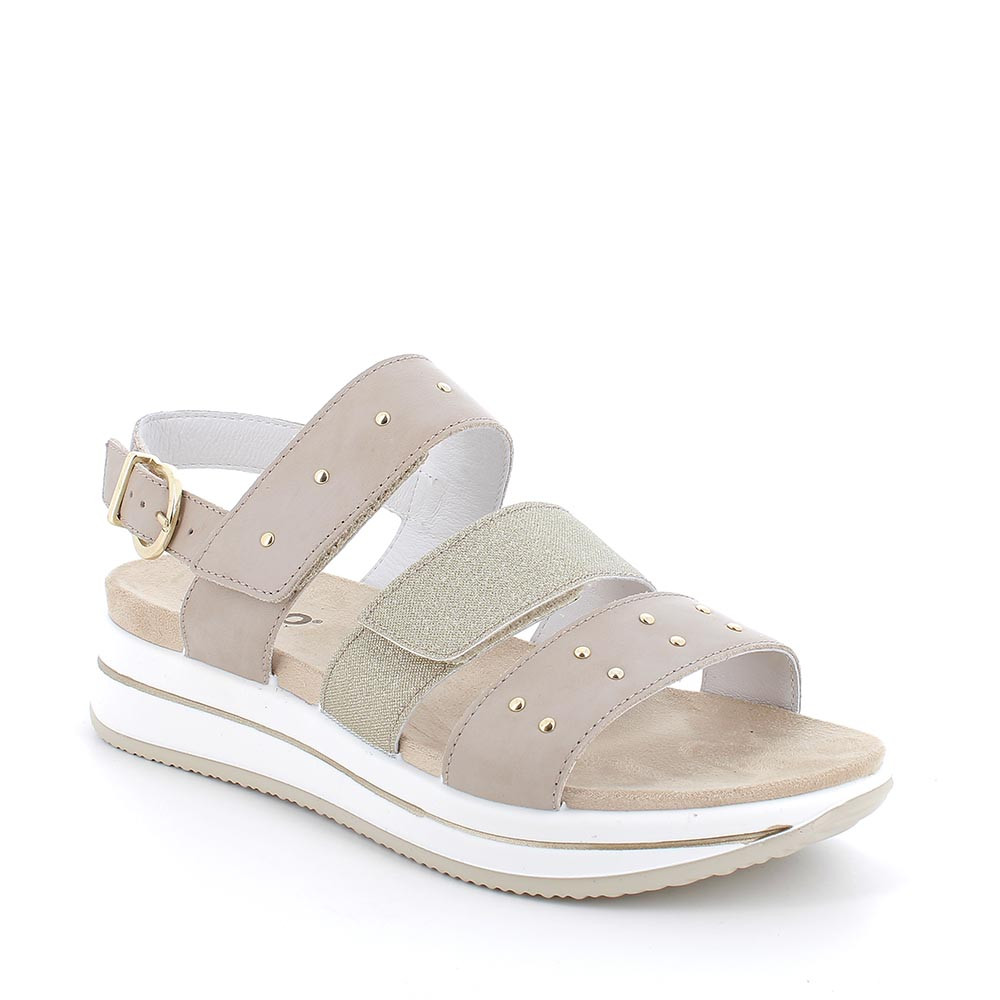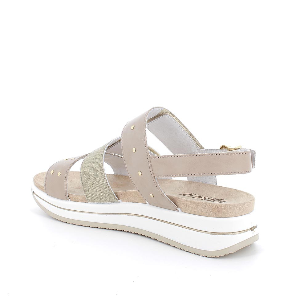 Sandalo con zeppa da donna beige-oro