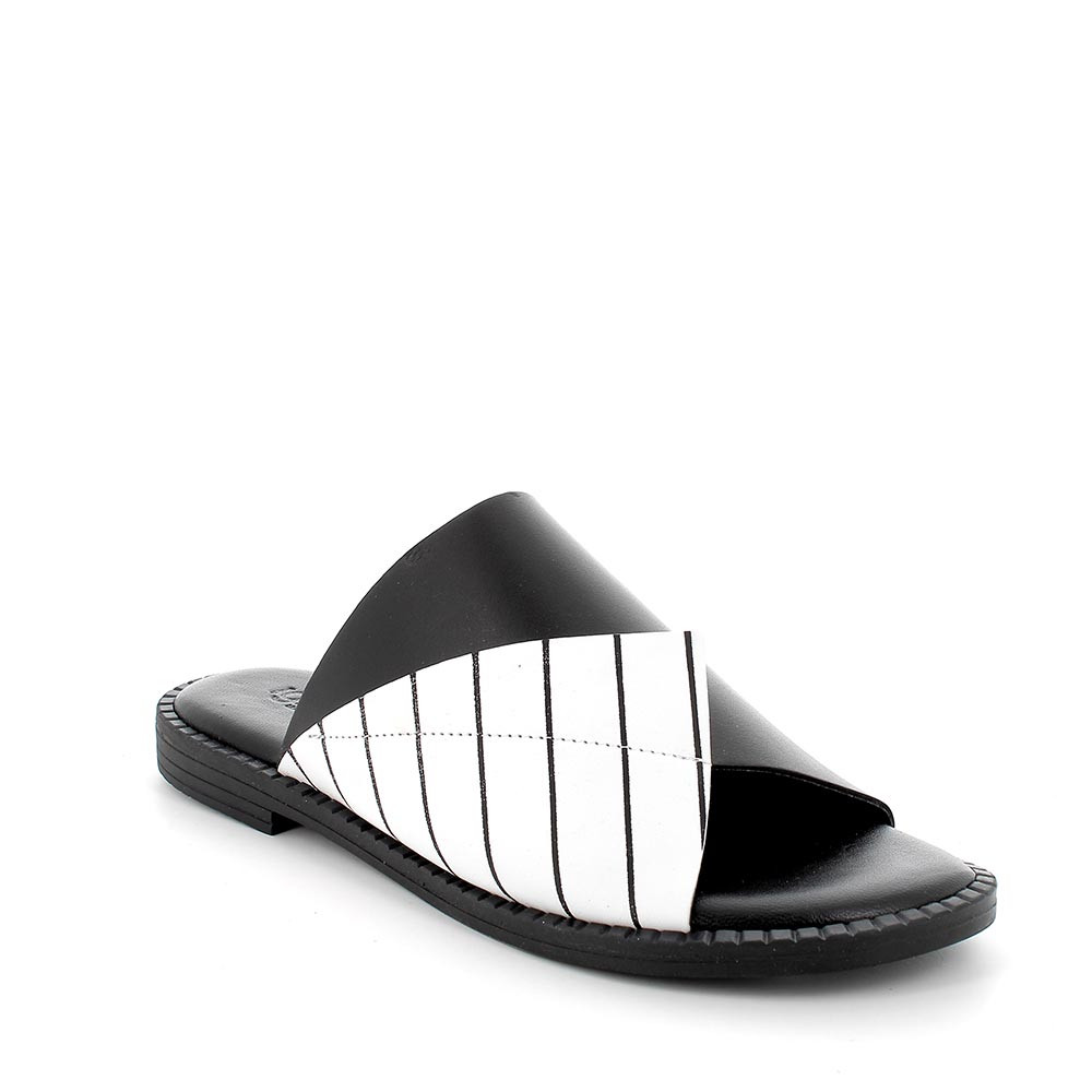 Sandalo in pelle da donna nero-bianco