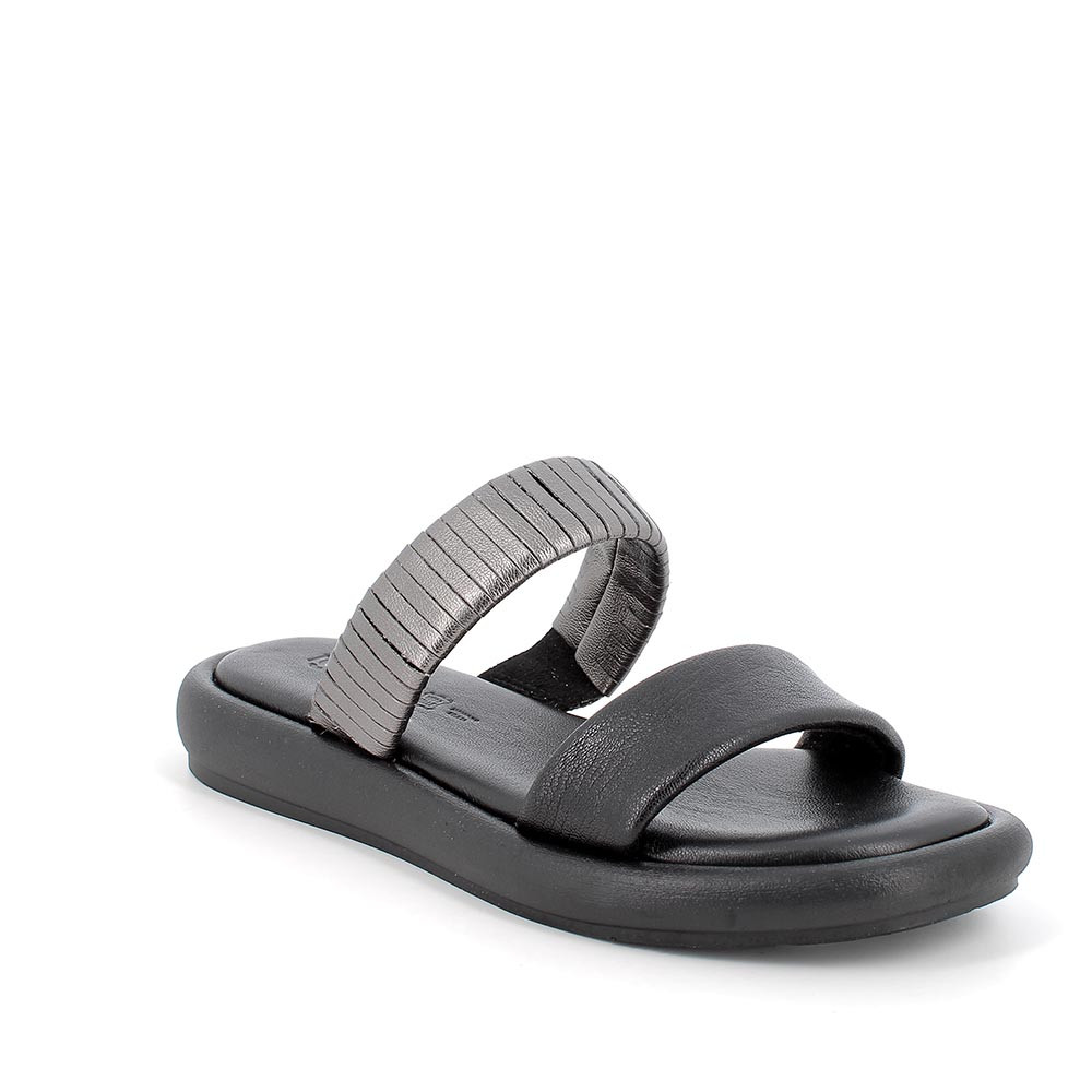 Sandalo in pelle da donna nero-grigio scuro
