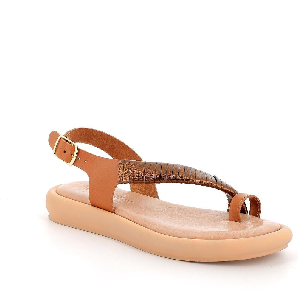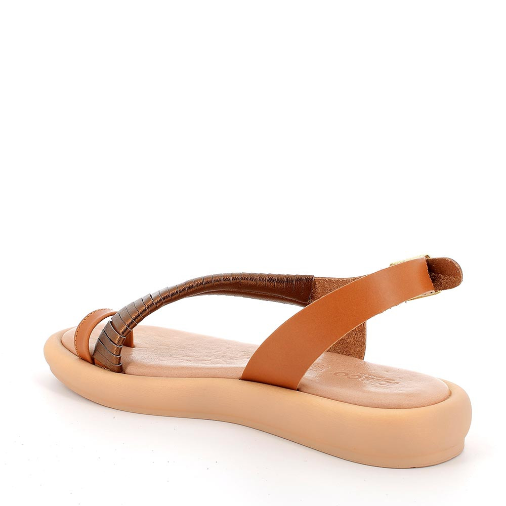Sandalo con infradito in pelle da donna cuoio-rame