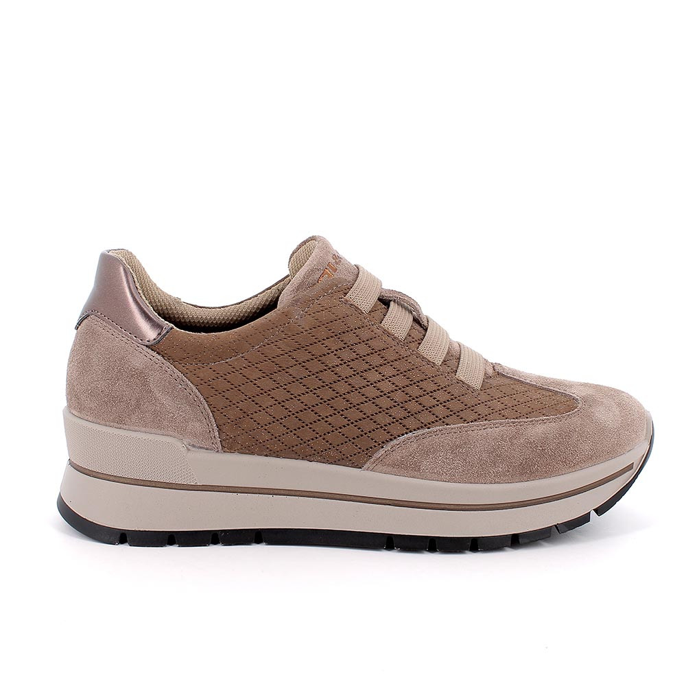 Queste sneakers di pelle con chiusura elastici e morbido gonfietto alla caviglia sono un must per la stagione invernale. La suola a zeppa, oltre ad essere attualissima, offre un ottimo isolamento termico. Gli intagli sul battistrada ne assicurano anche la flessibilità. La fodera è pensata in morbido tessuto , per garantire un ambiente caldo e confortevole. Il plantare estraibile in memory foam è rivestito in pelle e assicura ammortizzazione proteggendo il piede dalle sollecitazioni.
