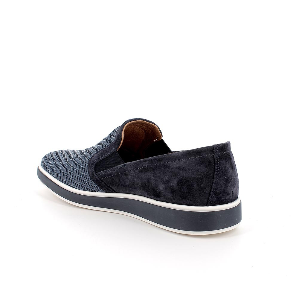 Le scarpe slip on da uomo sono un'opzione molto comoda che permette di infilarle e sfilarle rapidamente. Gli inserti elastici rendono anche più piacevole indossarle per tutta la giornata. Queste calzature sono realizzate in pelle ad effetto trama ed hanno un design semplice e lineare. La suola, leggera e flessibile, dona carattere e personalità. Il sottopiede anatomico è estraibile e rivestito in pelle per assicurare traspirabilità e igiene.