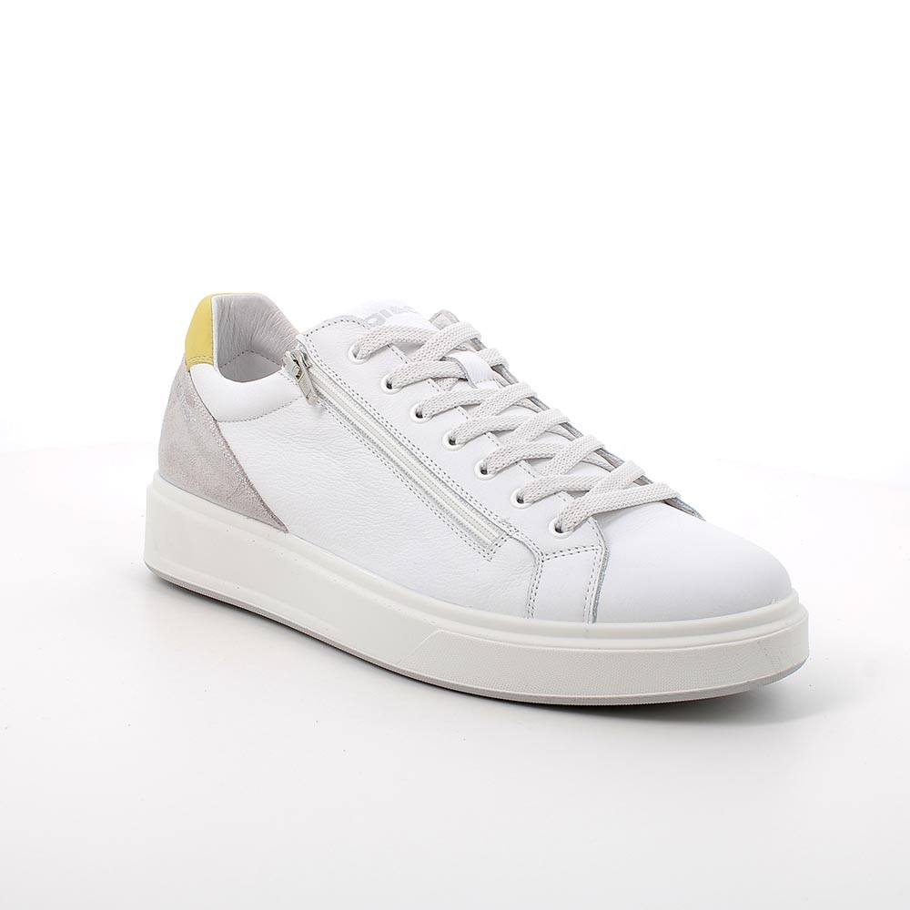 Le sneakers sono le scarpe preferite dall'uomo , che apprezzerà di certo questo modello con zip laterale. La praticità di indossarle senza dover slacciare le stringhe è ineguagliabile. Sono anche molto morbide e leggere, grazie alla scelta dei materiali con cui sono realizzate sia tomaia che suola. Il dettaglio posteriore in contrasto di colore le rende perfette per dare un tocco di freschezza agli outfit estivi. Il sottopiede anatomico è estraibile e rivestito in pelle per assicurare traspirabilità e igiene.