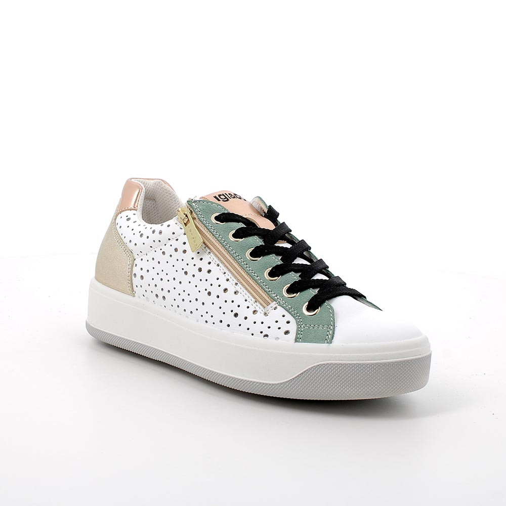 Sneakers in pelle da donna bianco-verde