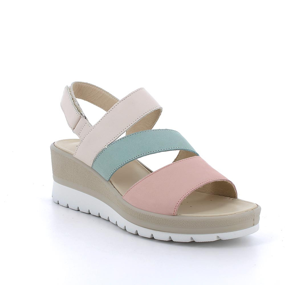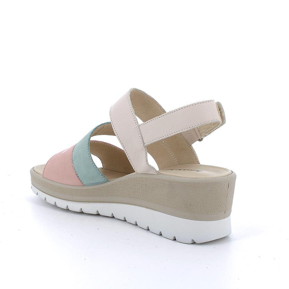 Sandali con zeppa in pelle da donna rosa-acquamarina