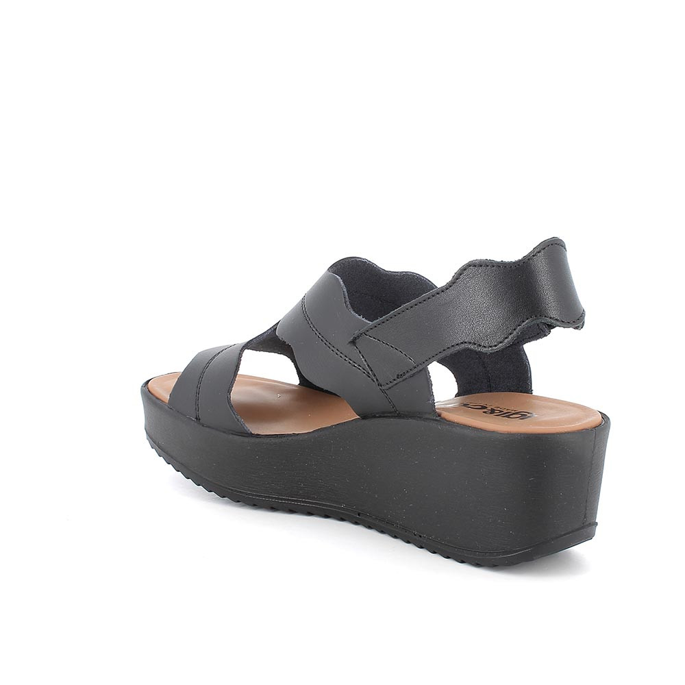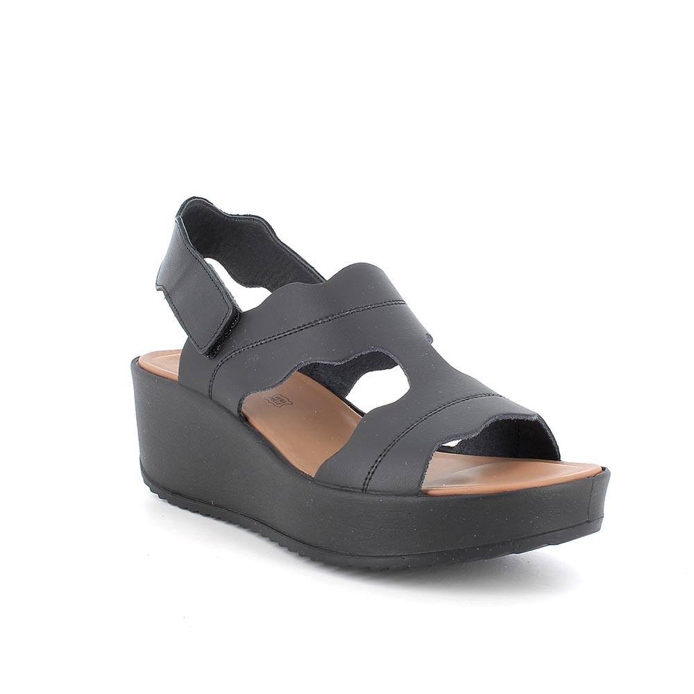 La semplicità è sinonimo di eleganza. Questi sandali in pelle hanno delle linee semplici e femminili, di appeal immediato. La tomaia è sfoderata ed il cintino posteriore, regolabile con velcro, è libero da ogni accessorio di fissaggio. Immancabile il sottopiede in pelle per un appoggio asciutto, naturale e delicato. La suola, dotata di zeppa piuttosto importante, è assolutamente leggera e non affatica il passo.