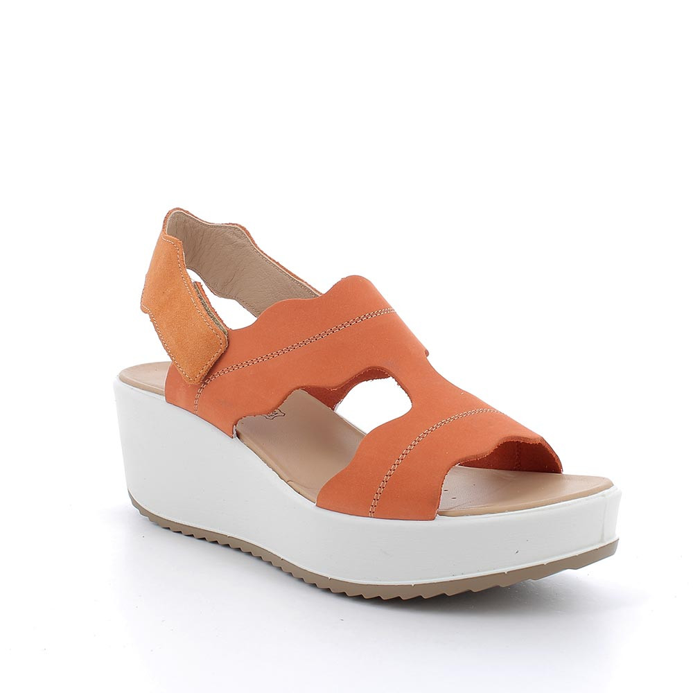 Sandali con zeppa in pelle da donna arancione