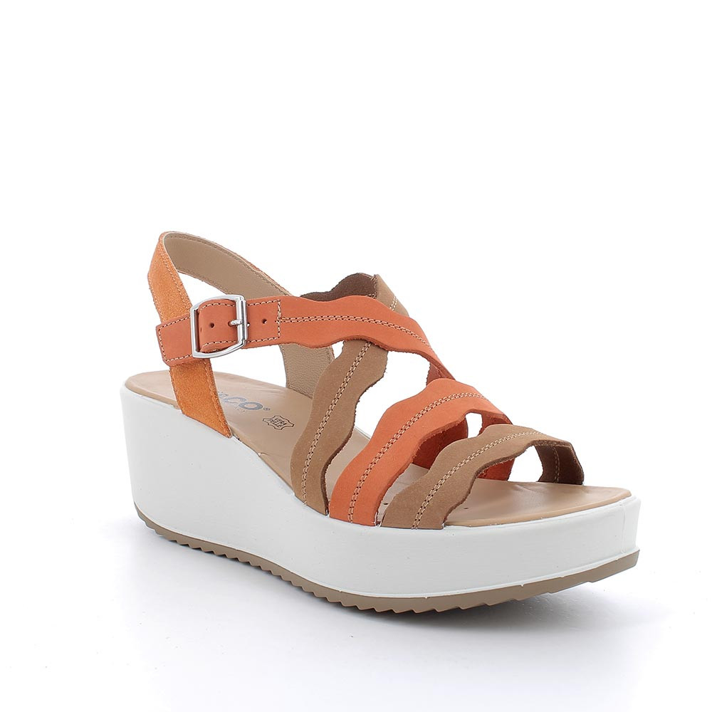 Sandali con zeppa in pelle da donna arancio-cuoio