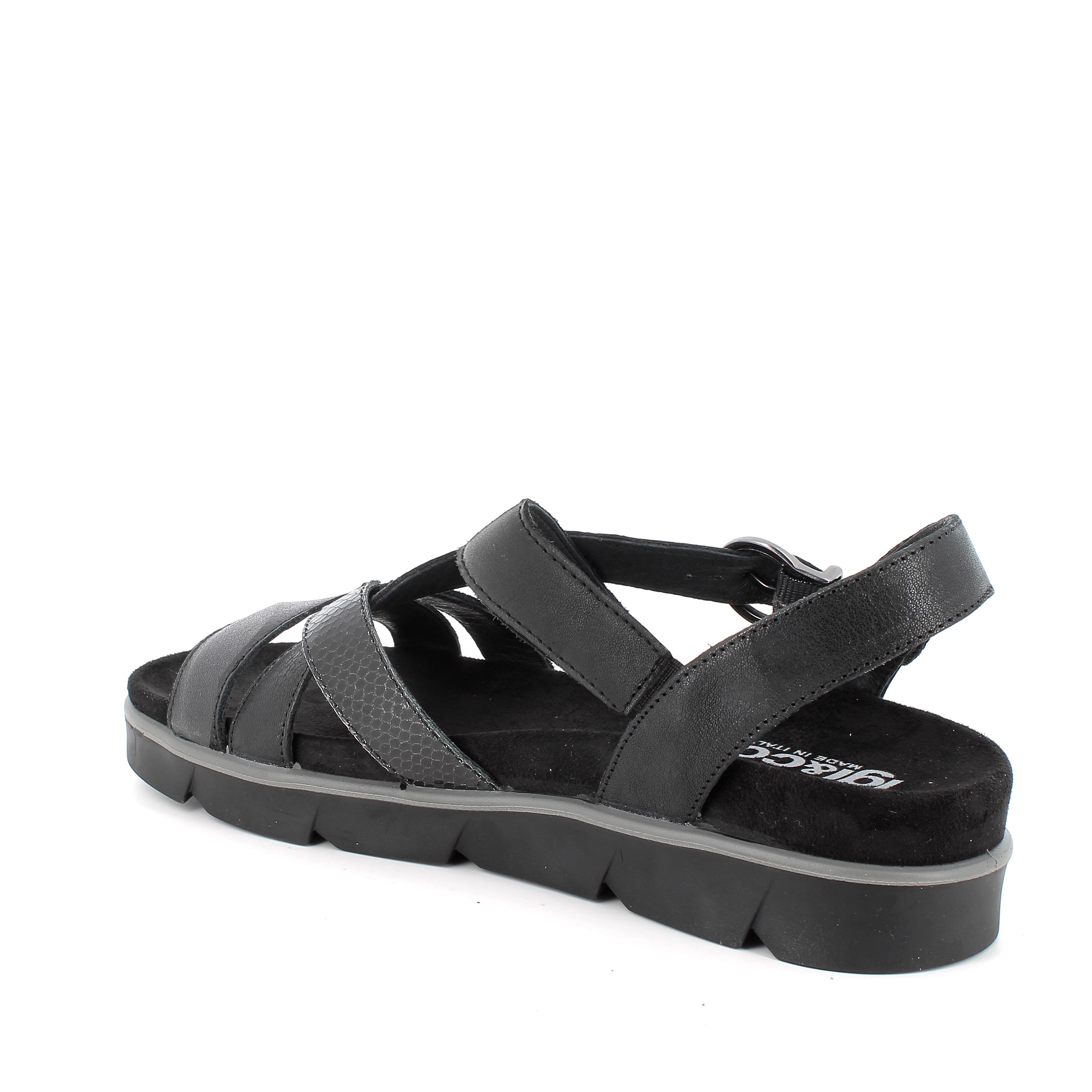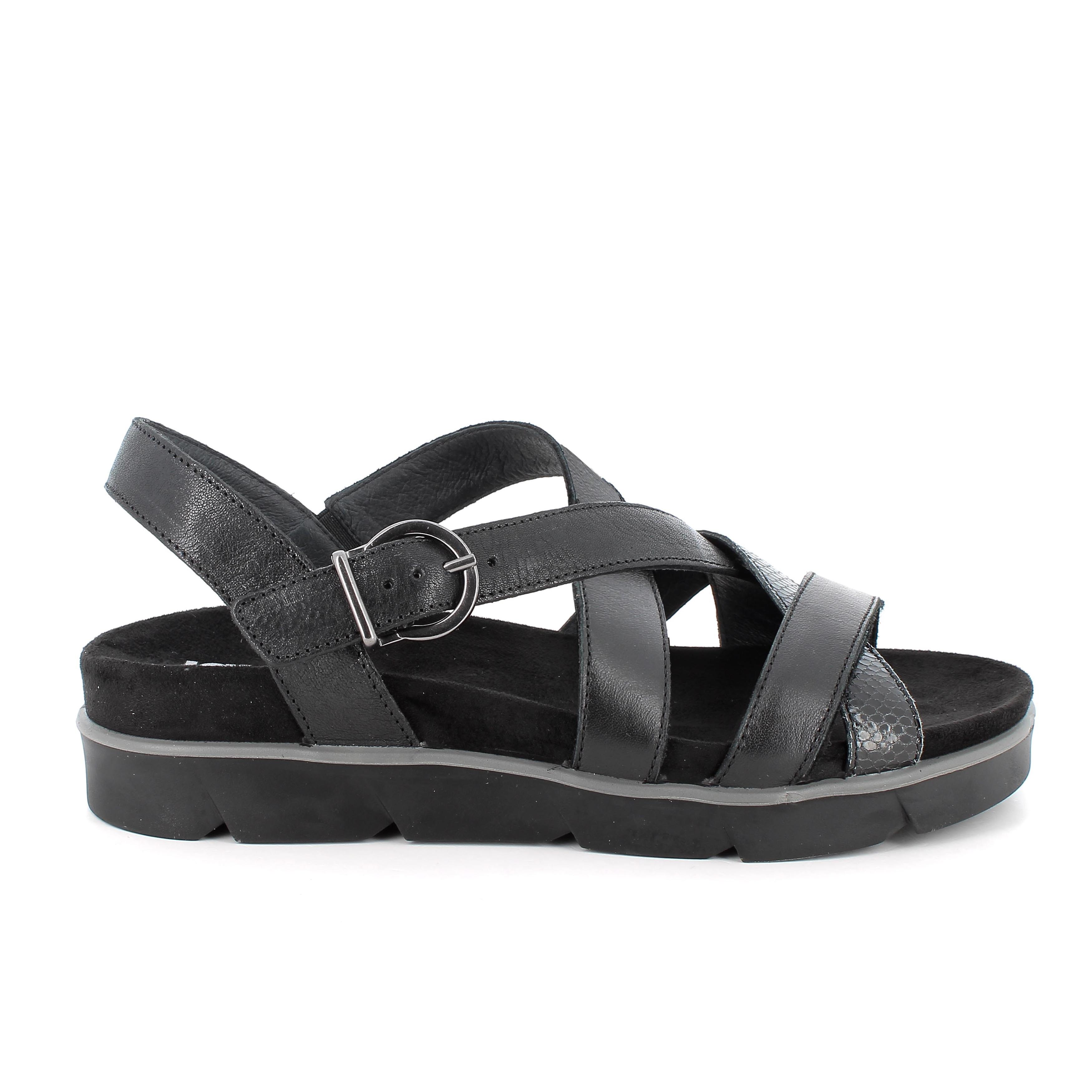 Un piacevole intreccio di cinturini di vari pellami caratterizza questi sandali da donna. Le tonalità si fondono a creare delle calzature facilissime da abbinare agli outfit estivi. Il piede rimane molto scoperto mentre viene abbracciato dalle morbide fascette, per un maggiore senso di libertà e freschezza. La conformazione del plantare e della suola agevolano dolcemente i movimenti e non appesantiscono il passo.