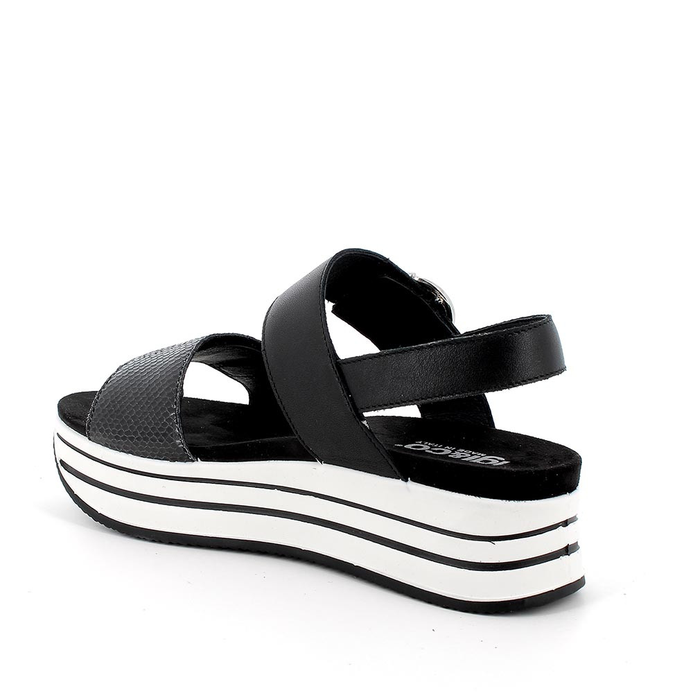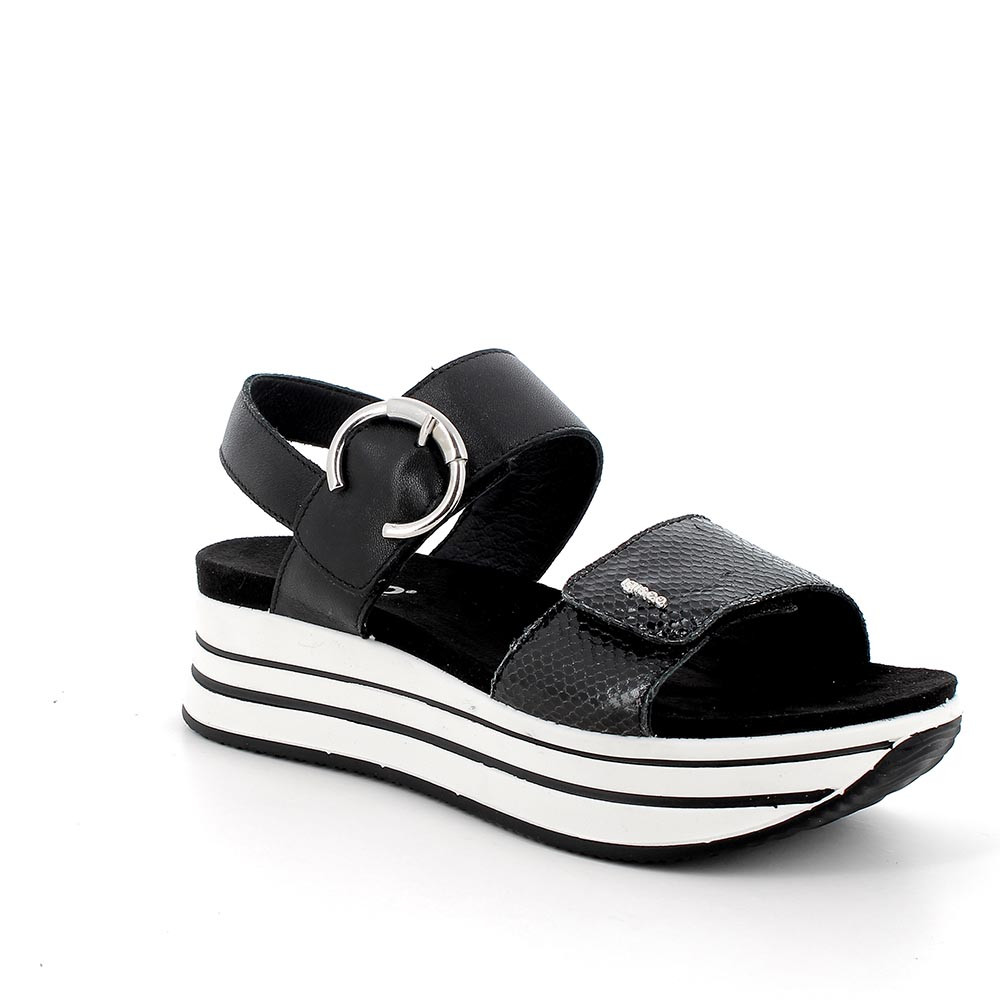 Sandali in pelle dalle linee design e dal gusto sportivo, impreziositi da una fascia con fibbia ornamentale e regolazione con strap. Un dettaglio che può donare carattere a qualsiasi outfit sceglierai per la tua estate. Questi sandali hanno una calzata ampia per offrire benessere di indosso per tutto il giorno. La suola con plateau è confortevole e leggera ed assicura grande praticità nei movimenti.