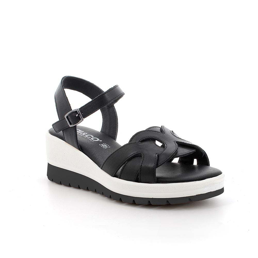 Sandali con zeppa in pelle da donna nero