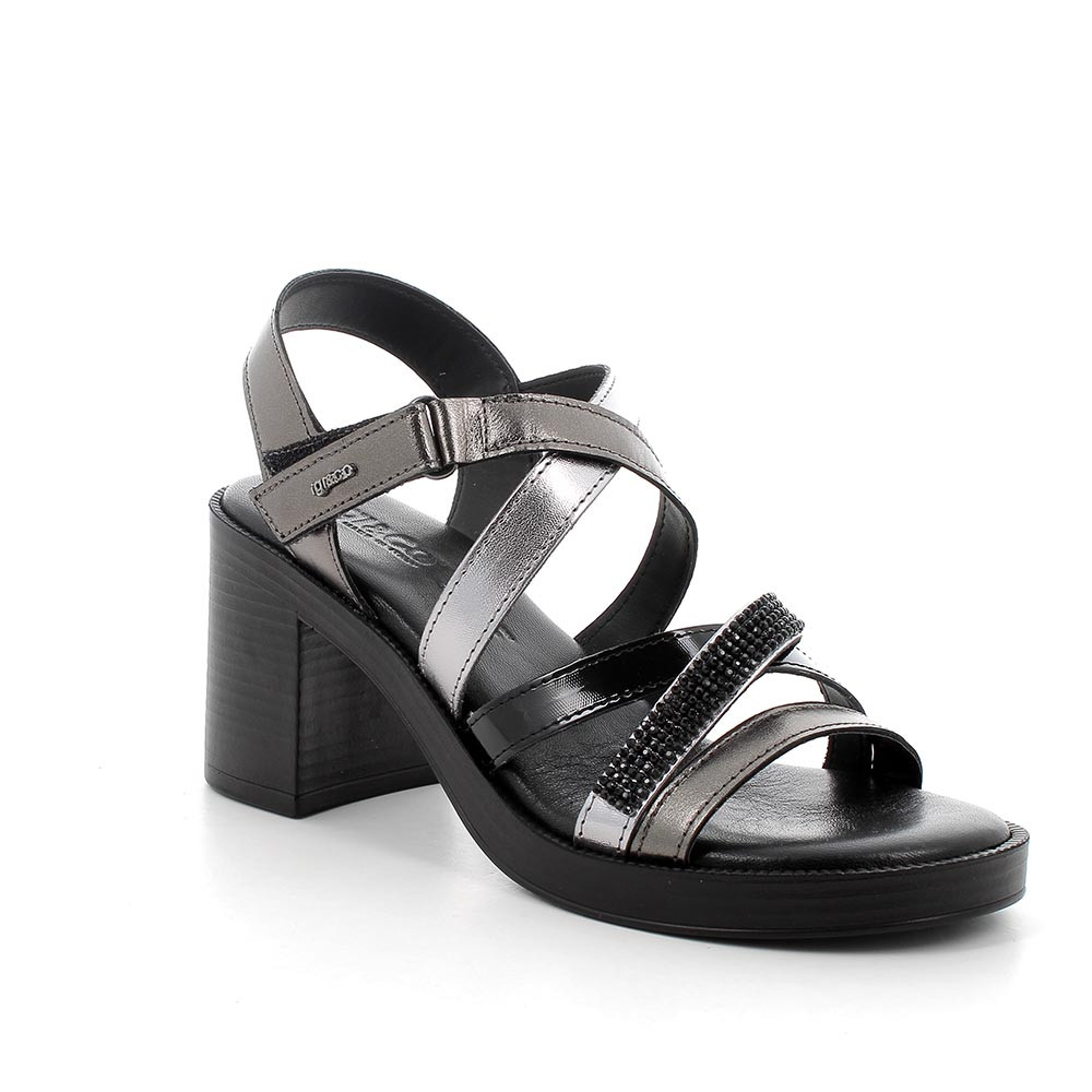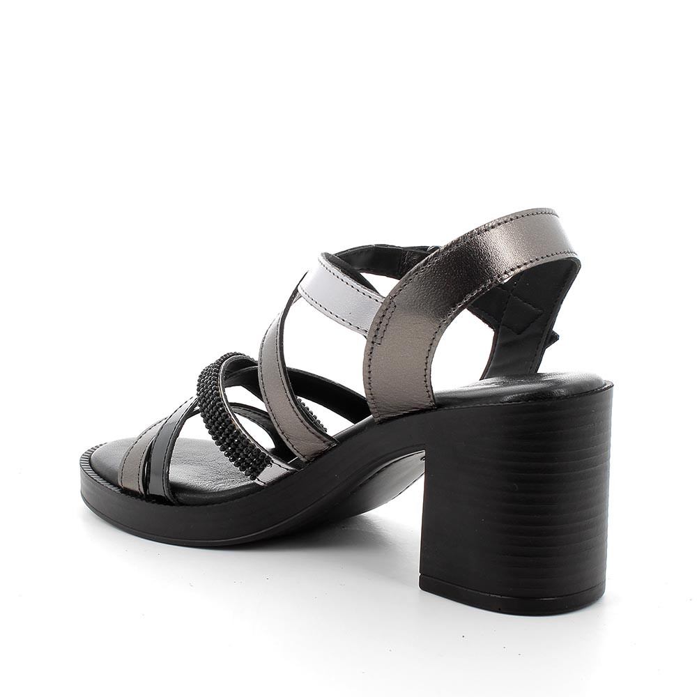 Sandali con tacco in pelle da donna grigio scuro