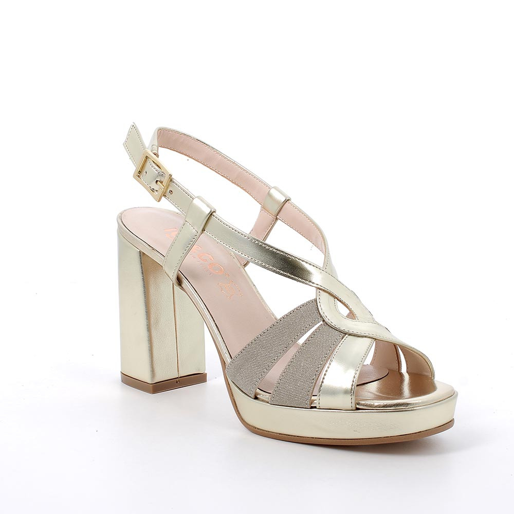 Sandali con tacco e plateau da donna platino