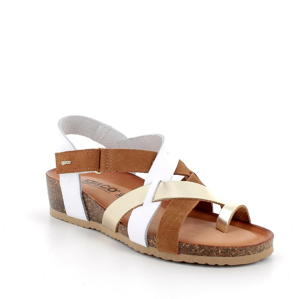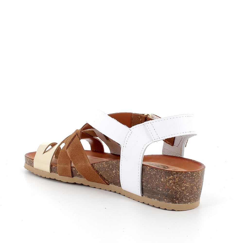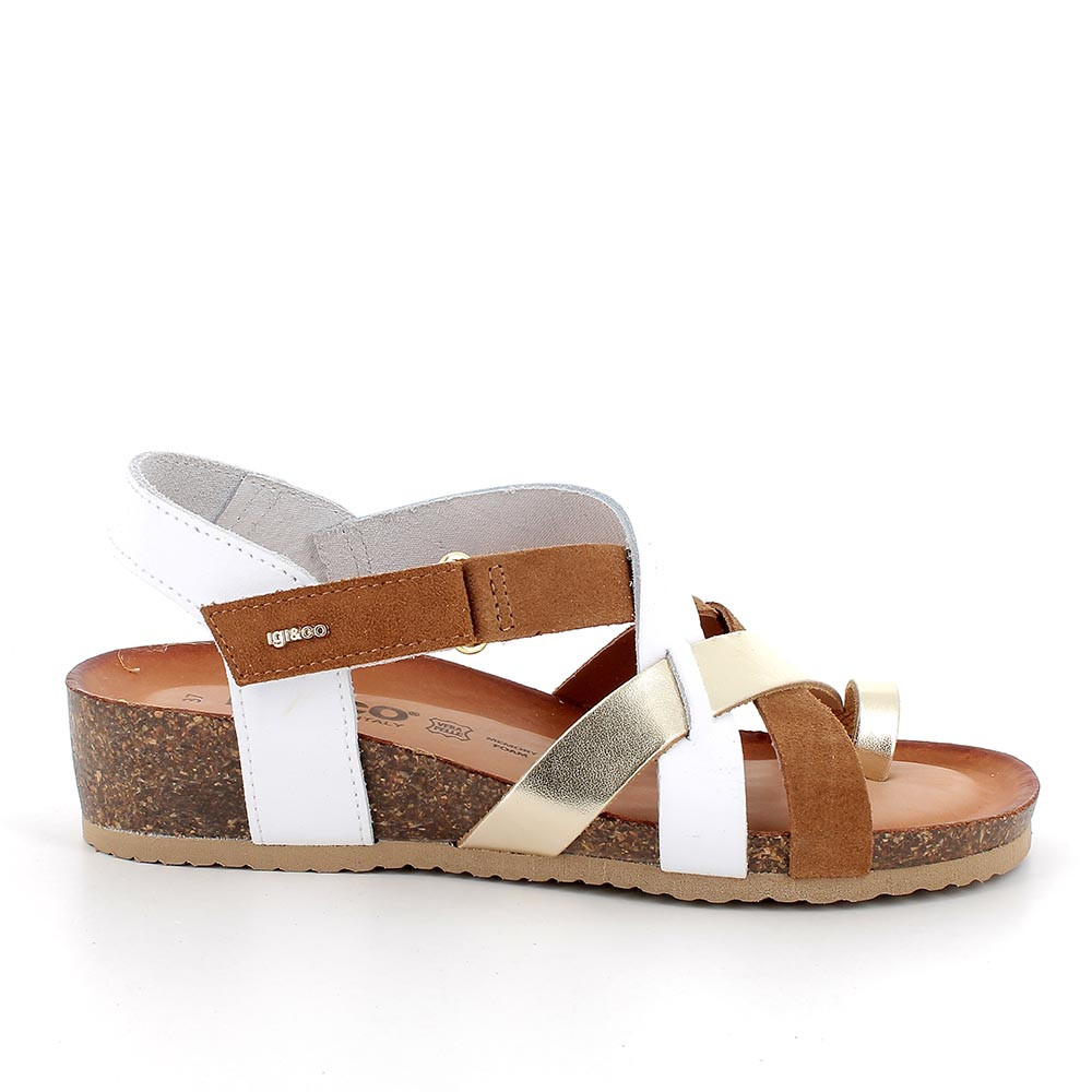 Sandalo dall'intreccio originale e femminile, regolabile grazie alla pratica chiusura velcro alla caviglia. Passepartout per outfit estivi da vivere in comodità e libertà. La suola, leggermente a zeppa e con la leggerezza tipica delle calzature IGI&CO, è dotata di plantare anatomico rivestito in pelle per garantire traspirazione per tutta la giornata.