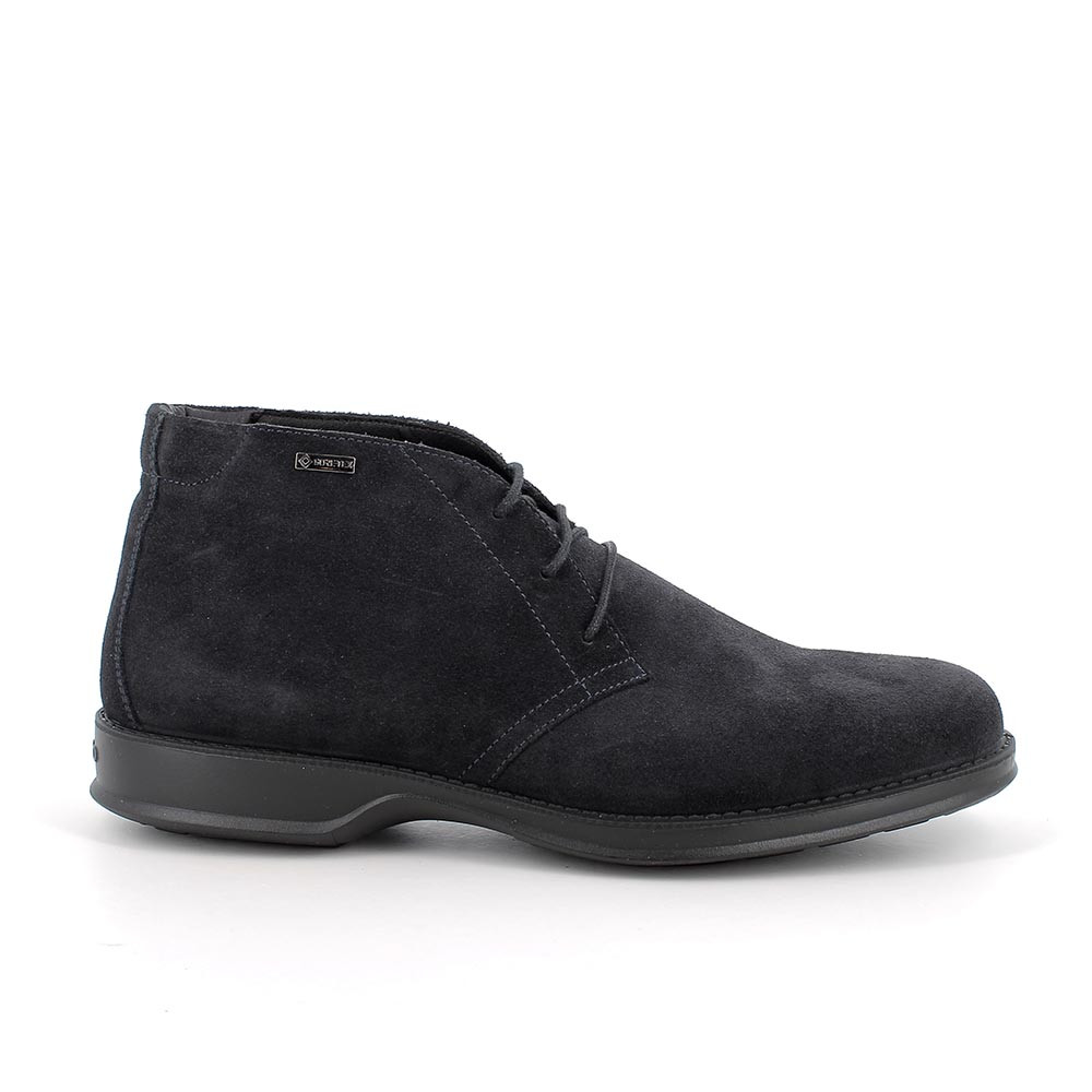 Questo desert boot in pelle scamosciata è realizzato con una suola evergreen dalle linee essenziali. La piccola imbottitura posteriore protegge la caviglia mentre si cammina. La fodera GORE-TEX lo rende una calzatura invernale che non teme le intemperie e lascia respirare il piede. Il sottopiede anatomico è estraibile e rivestito in pelle per assicurare traspirabilità e igiene.