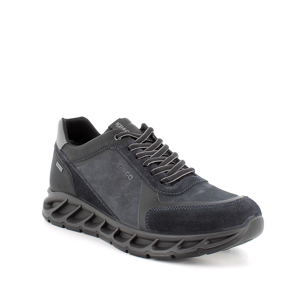 Sneakers gore-tex in pelle da uomo blu scuro-navy