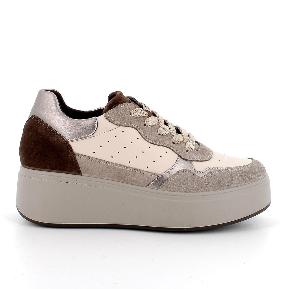 Sneakers con zeppa in pelle da donna marmotta