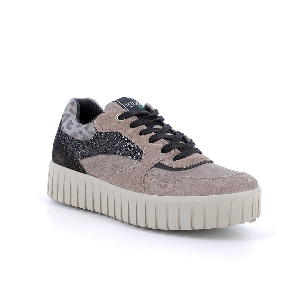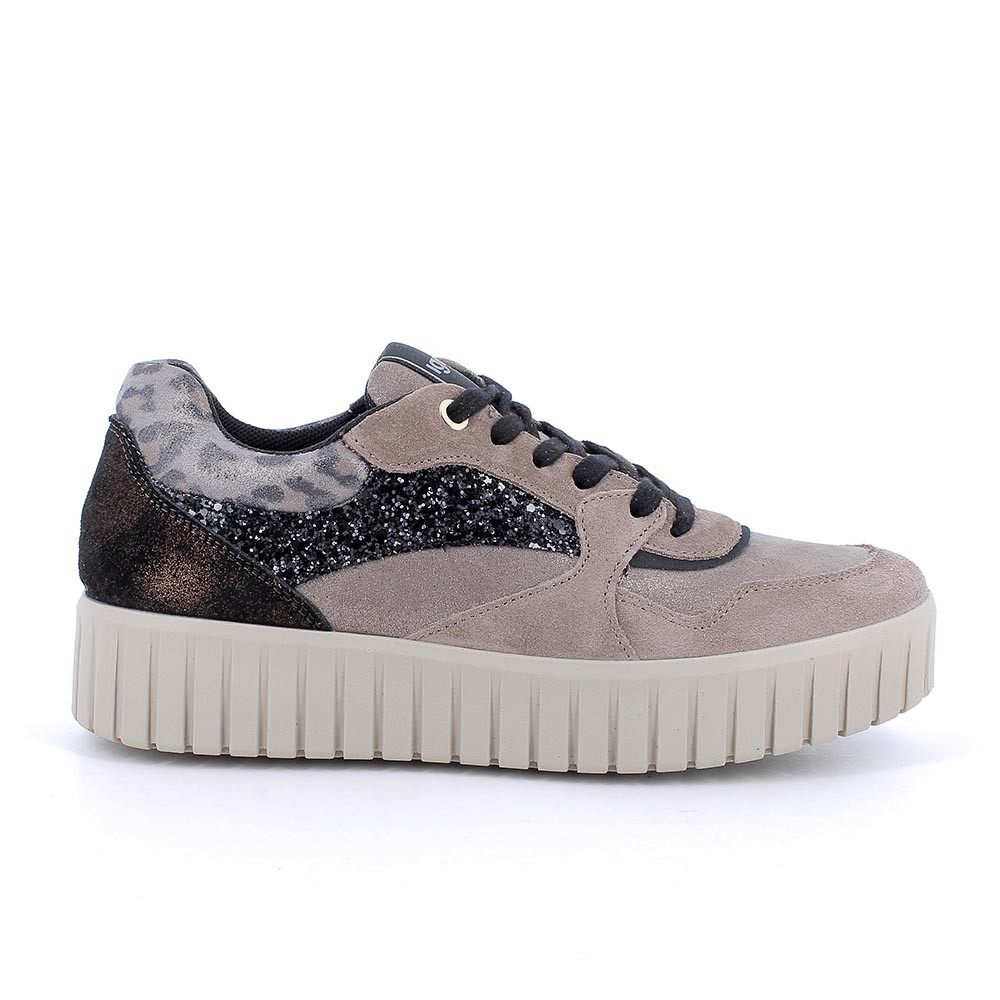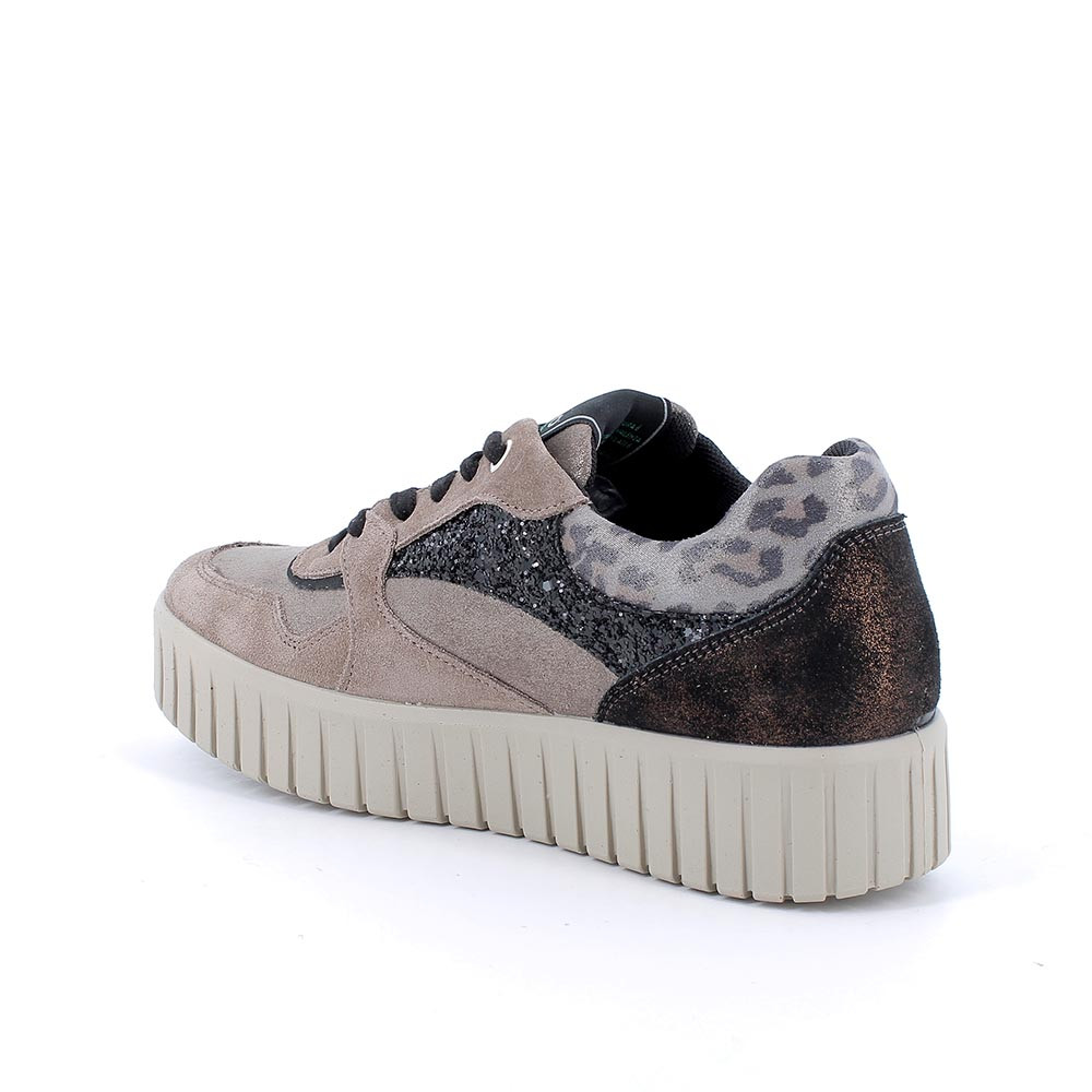 Sneakers eco-sostenibili con zeppa in pelle da donna fango