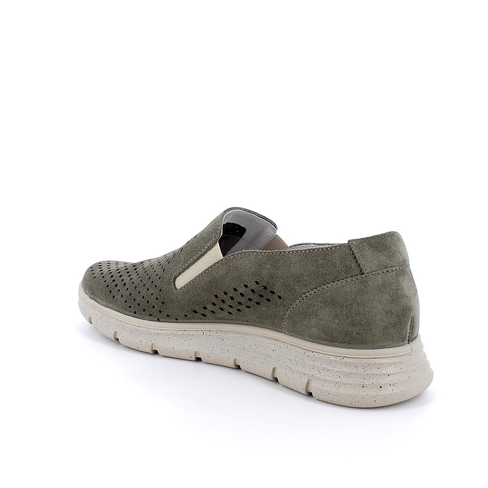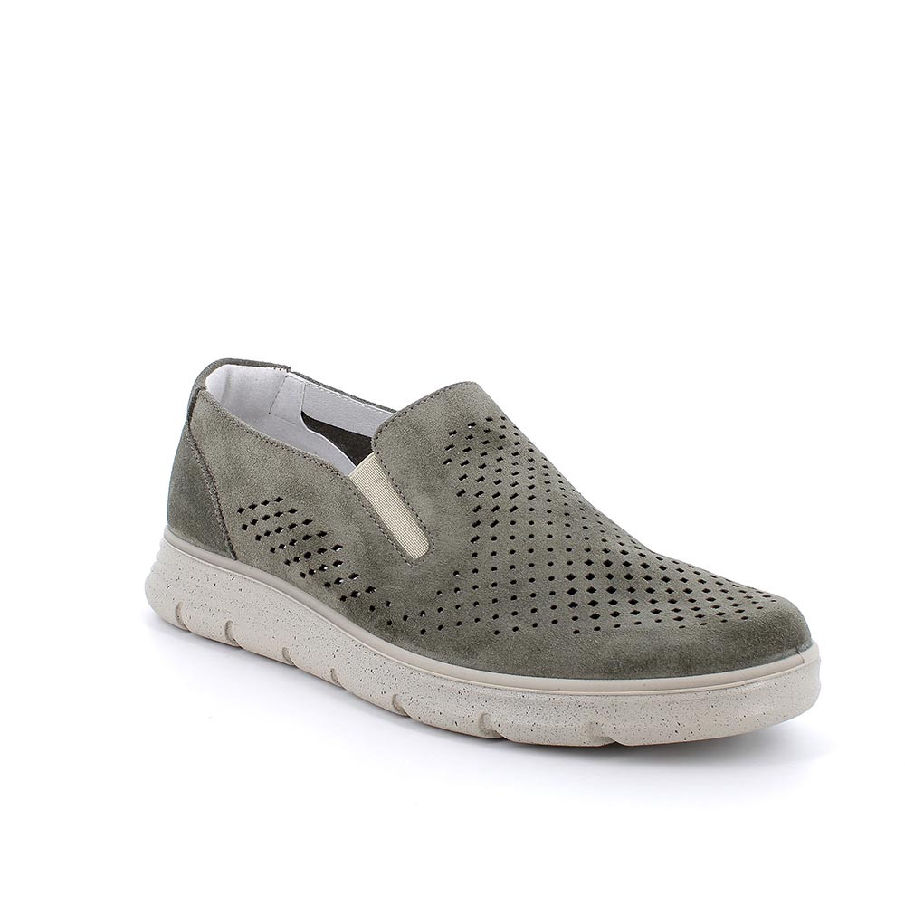 Le scarpe slip on da uomo offrono grande comodità, ed un passo sempre sicuro in ogni condizione. Questo modello è realizzato in pelle scamosciata traforata per garantire anche un'ottima traspirazione nei mesi più caldi. Gli evidenti intagli trasversali della suola sono studiati per favorirne la flessibilità e garantirne l'aderenza al suolo. Il sottopiede anatomico è estraibile e rivestito in pelle per assicurare traspirabilità e igiene.