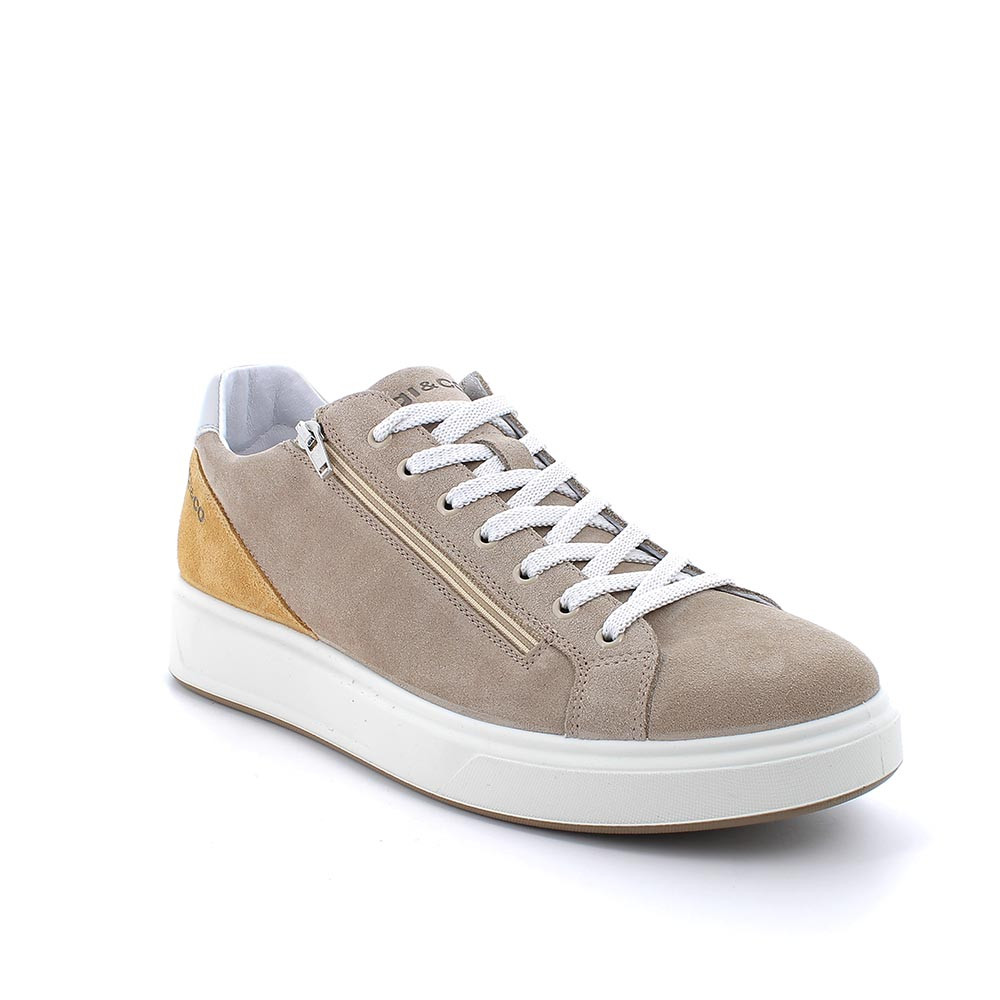 Le sneakers sono le scarpe preferite dall'uomo , che apprezzerà di certo questo modello con zip laterale. La praticità di indossarle senza dover slacciare le stringhe è ineguagliabile. Sono anche molto morbide e leggere, grazie alla scelta dei materiali con cui sono realizzate sia tomaia che suola. Il dettaglio posteriore in contrasto di colore le rende perfette per dare un tocco di freschezza agli outfit estivi. Il sottopiede anatomico è estraibile e rivestito in pelle per assicurare traspirabilità e igiene.