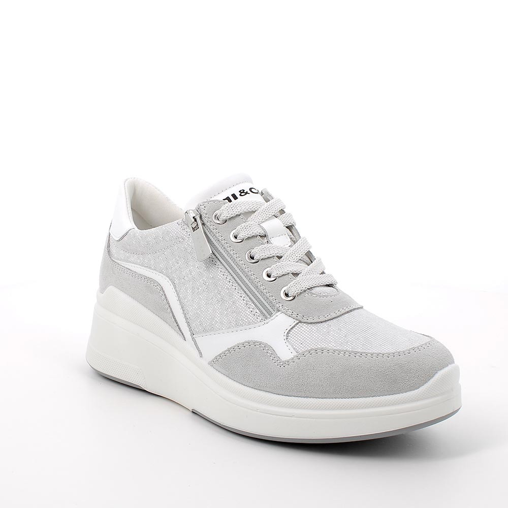 Le sneakers possono completare innumerevoli outfit di una donna ed accompagnarla sia nel tempo libero che nelle occasioni speciali. Queste regalano una immagine sobria e centimentri in più. Le stringhe permettono una perfetta regolazione e la suola a zeppa offre grande sostegno e isolamento dalle asperità del suolo. Il sottopiede anatomico è estraibile e rivestito in pelle per assicurare traspirabilità e igiene.