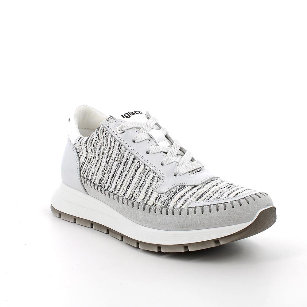 Queste sneakers hanno una tomaia realizzata in tessuto intrecciato che dona un effetto fresco e moderno. I dettagli in pelle conferiscono robustezza. Le cuciture decorative, poste lungo i bordi della tomaia, denotano artigianalità e ricercatezza. La suola, leggermente rialzata, è segmentata per garantire flessibilità e comfort durante la camminata.