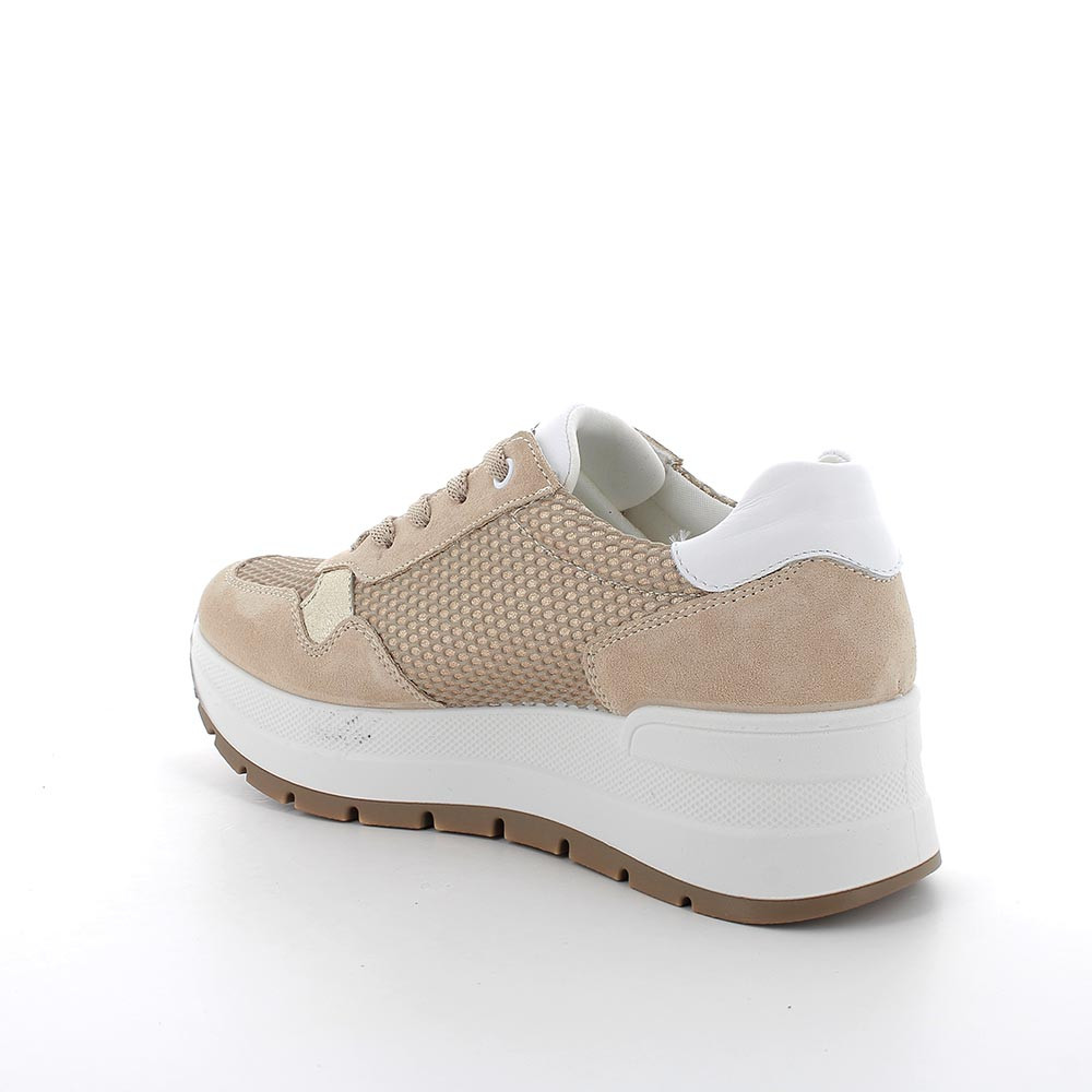 Sneakers con zeppa da donna beige con lacci