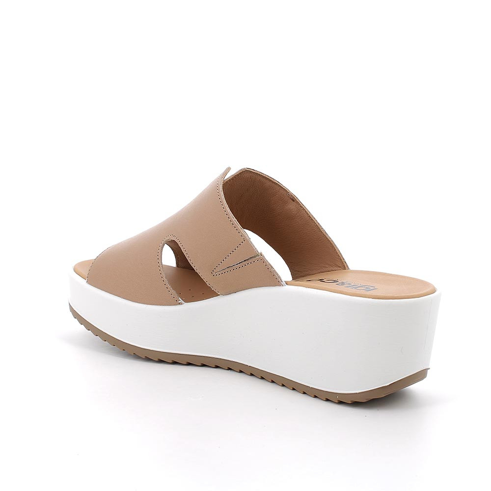 Spesso si sacrifica la comodità per seguire la moda del momento. Per essere trendy e garantirsi allo stesso tempo il massimo comfort basta scegliere dei sandali modello ciabatta come questi. La linea è essenziale ed i dettagli sono studiati con cura. L'intaglio sulla fascia e l'inserto elastico invisibile ti permettono di indossare queste calzature per tutto il giorno e sentirti a pieno agio fino a sera. La suola a zeppa ha una linea elegante ed è più sottile in punta per favorire il movimento.