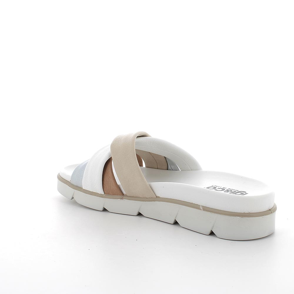 Questi sandali a ciabattina esprimono tutta la comodità che si può cercare in estate. La tomaia realizzata con fascette tubolari risulta morbida e confortevole. Il plantare sagomato accoglie il piede in modo stabile. La suola piatta è dotata di scanalature per una migliore aderenza su diverse superfici, aumentando la sicurezza durante l'uso.