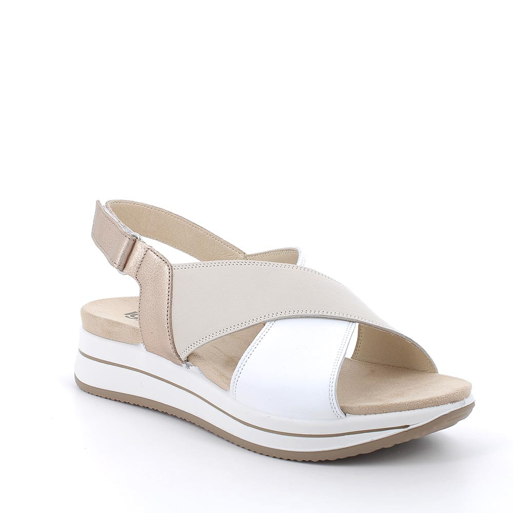 Sandali donna in pelle dall'animo fresco e contemporaneo e dal design essenziale che ben si abbina ai look estivi. Il davanti ha doppie fasce incrociate comode ed avvolgenti, mentre sul dietro, sono dotati di un cintino con pratica regolazione velcro per permetterti di indossarli velocemente. La suola nasce dal connubio di stile sportivo e desiderio di comodità. E' stabile, leggera e grazie allo spessore, isola ottimamente dalle asperità del suolo.
