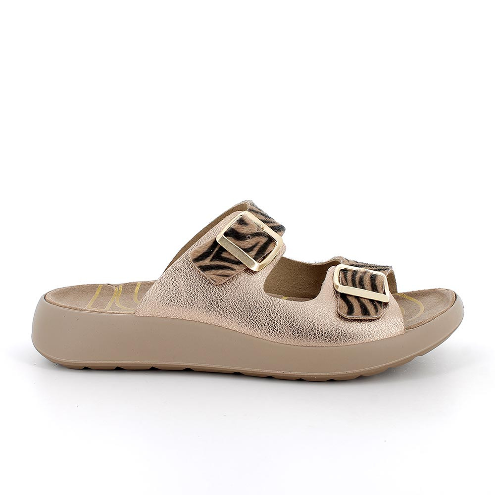 Le ultime tendenze per l'estate vedono le ciabatte come delle calzature da abbinare a qualsiasi outfit cittadino e vacanziero. E' importante che non siano soltanto comode, ma anche di carattere, per poter regalare quel tocco in più, per farsi notare con discrezione. Il piede appoggia su un plantare conformato a pianta ampia, per un maggiore comfort. Questi sandali fanno parte delle linee di calzature eco-friendly Igi&Co Green, che utilizzano materiali ecosostenibili certificati, riciclati o a basso impatto ambientale.