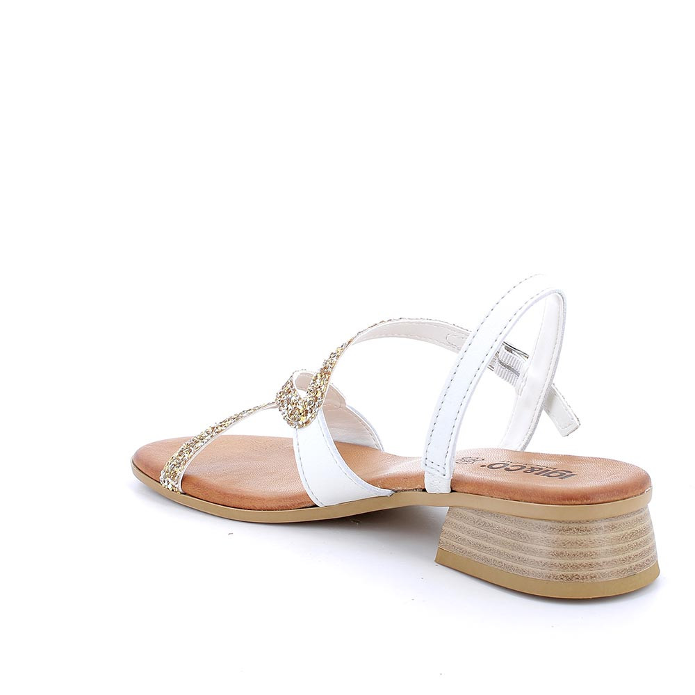 La semplicità e la luminosità di questi sandali bassi, sono le caratteristiche che li rendono un modello dal grande appeal. la comodità è esaltata dal plantare imbottito in memory foam. La suola ha un tacco basso e squadrato. Dettaglio  che rende i sandali ancora più distintivi, conferendo un aspetto un po' retrò, ma allo stesso tempo moderno e di tendenza.