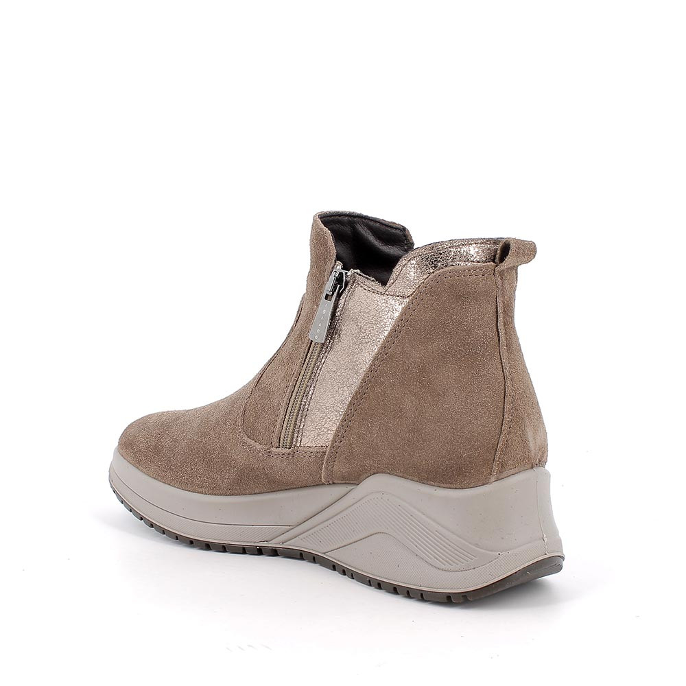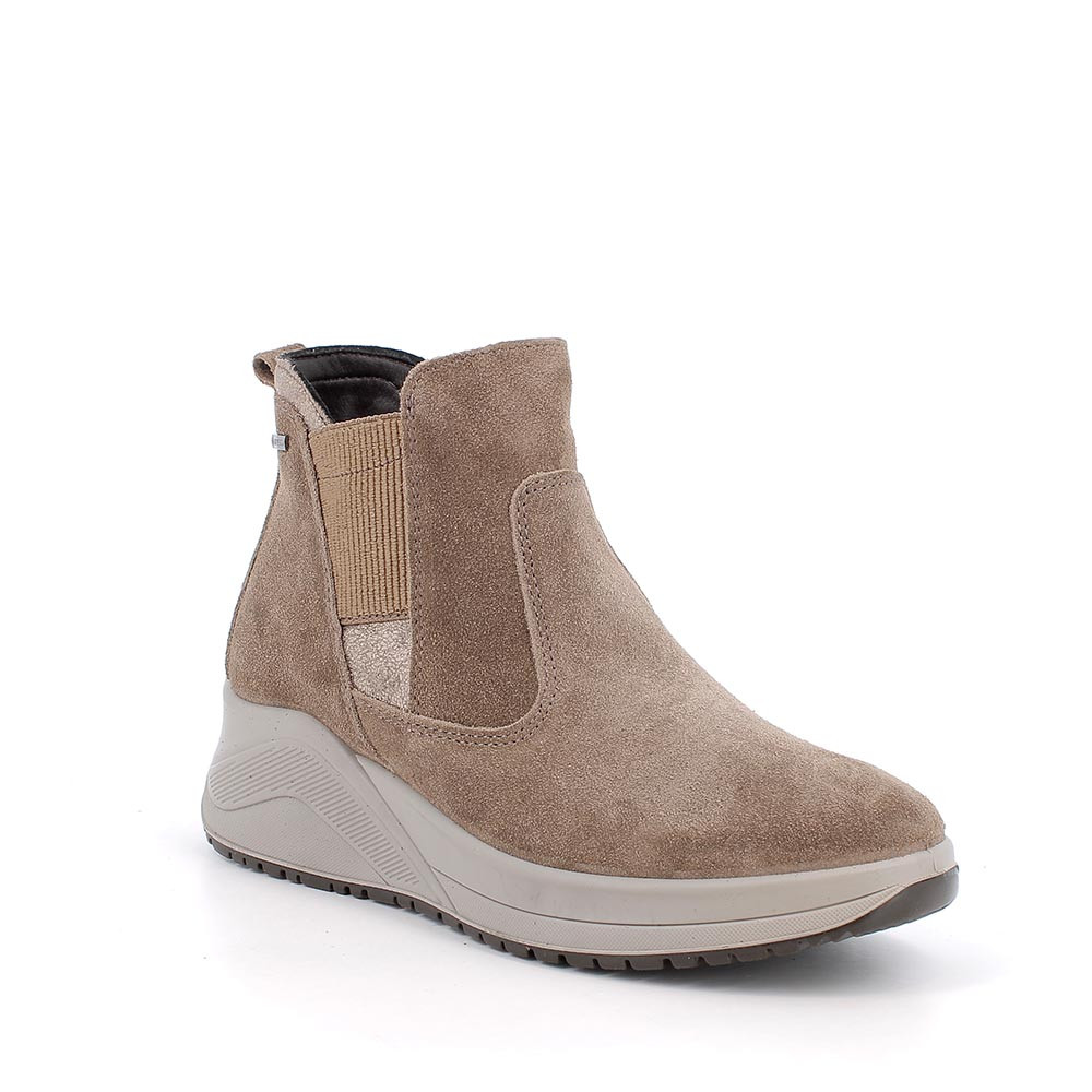 Stivaletti gore-tex con zeppa da donna beige con zip