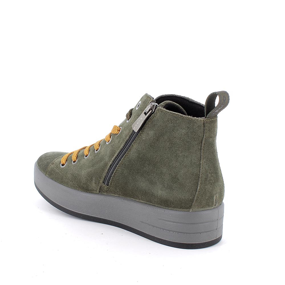 Scarpa in scamosciato di taglio mid dalle linee essenziali che protegge la caviglia dal freddo e dalle intemperie. La cerniera laterale permette di indossarla senza doverla slacciare ogni volta. La suola a scatola è leggera e flessibile ed ha la punta arrotondata per lasciare spazio alle dita. Il sottopiede anatomico è estraibile e rivestito in pelle per assicurare traspirabilità e igiene.