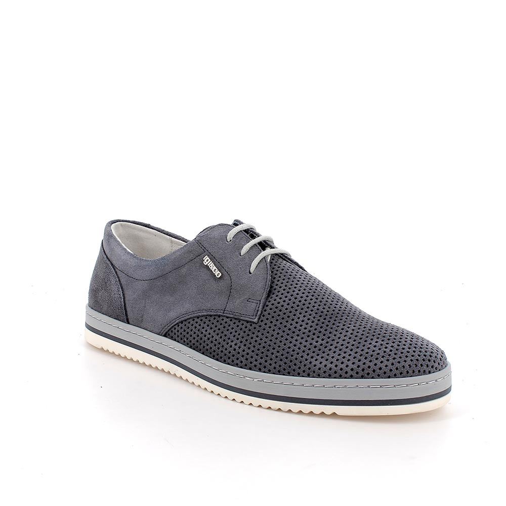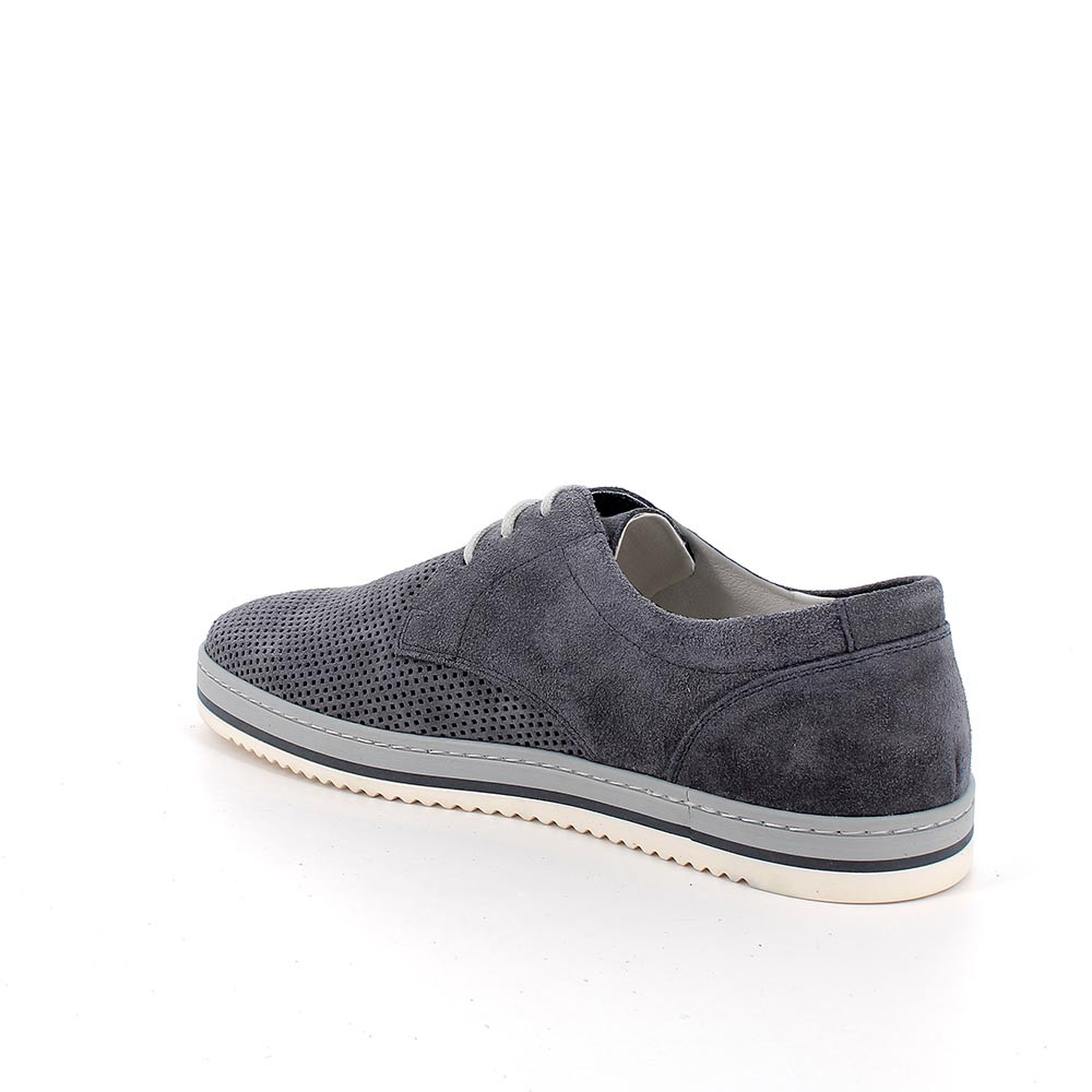 Queste scarpe da uomo sono realizzate in una combinazione di morbida pelle ad effetto microforato. Un dettaglio di stile che dona un aspetto più estivo e disinvolto. La suola, molto comoda e leggera, è etremamente flessibile adattandosi al meglio ai movimenti e al ritmo quotidiano. La cura per il dettaglio e la lavorazione accurata fanno di queste calzature un prodotto di altissima qualità. Il sottopiede anatomico è estraibile e rivestito in pelle per assicurare traspirabilità e igiene.