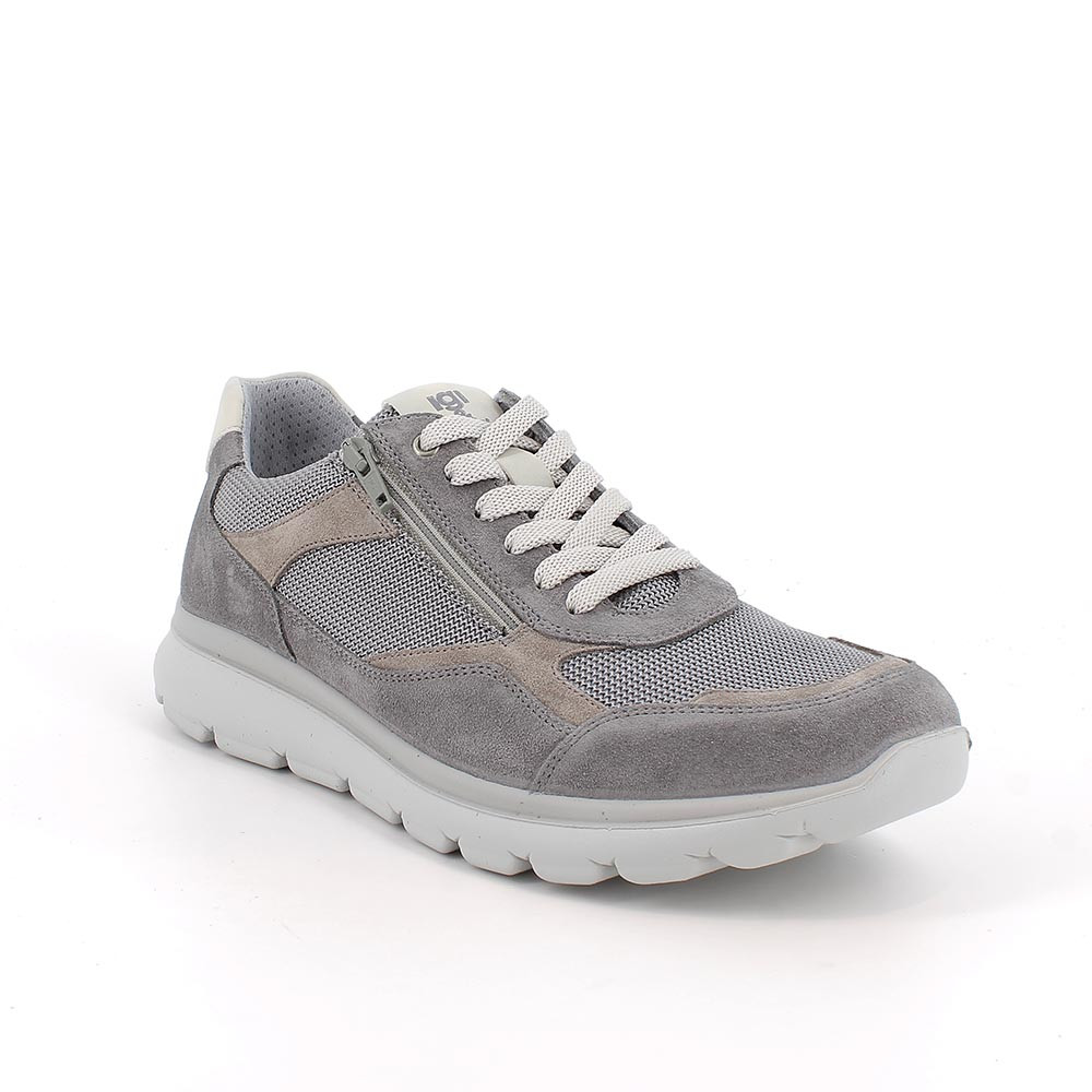 Sneakers in pelle scamosciata e tessuto tecnico, con inserti a contrasto che donano un look moderno e dinamico. La tomaia combina morbidezza e traspirabilità, mentre la suola assicura ammortizzazione, leggerezza e supporto durante la camminata. Il battistrada sagomato migliora grip e stabilità. Ideale per chi cerca comfort quotidiano, stile urbano e versatilità, perfetta per accompagnare outfit casual e smart casual con un tocco sportivo e raffinato.