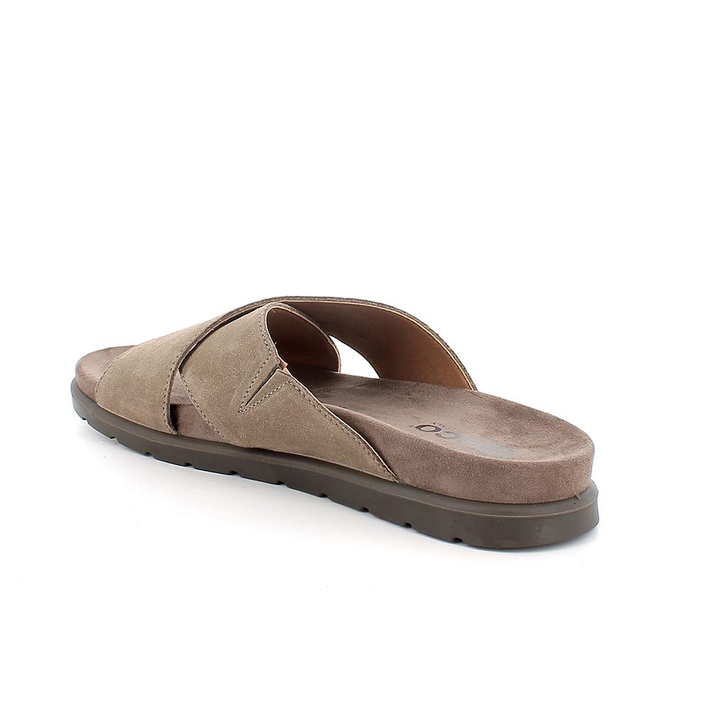 Ciabatta in pelle con fasce incrociate dal design essenziale e raffinato, pensata per offrire comfort immediato e sostegno naturale. La tomaia morbida avvolge il piede senza costringerlo, mentre il plantare anatomico favorisce una corretta postura e una camminata rilassata. È la scelta perfetta per chi vuole vivere l’estate con stile disinvolto, materiali di qualità e una sensazione di benessere costante, ideale sia in città che in vacanza.