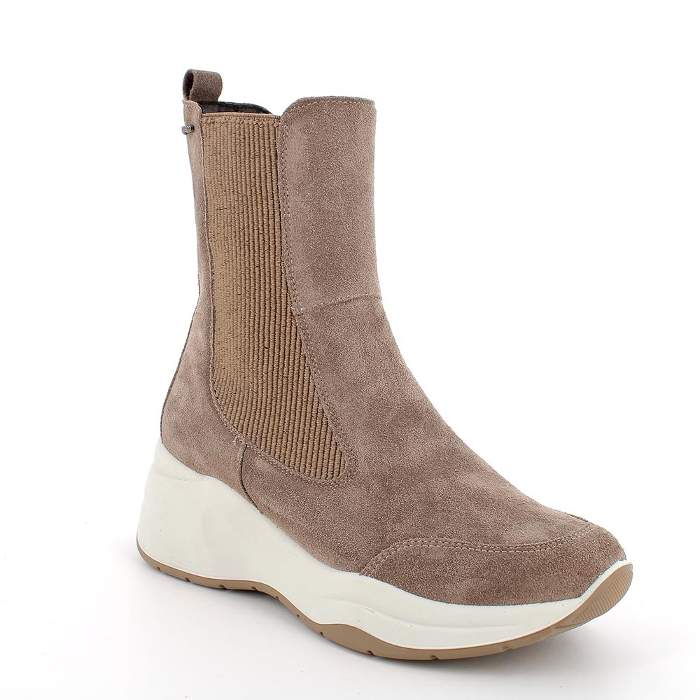 Stivaletti con zeppa in pelle da donna fango