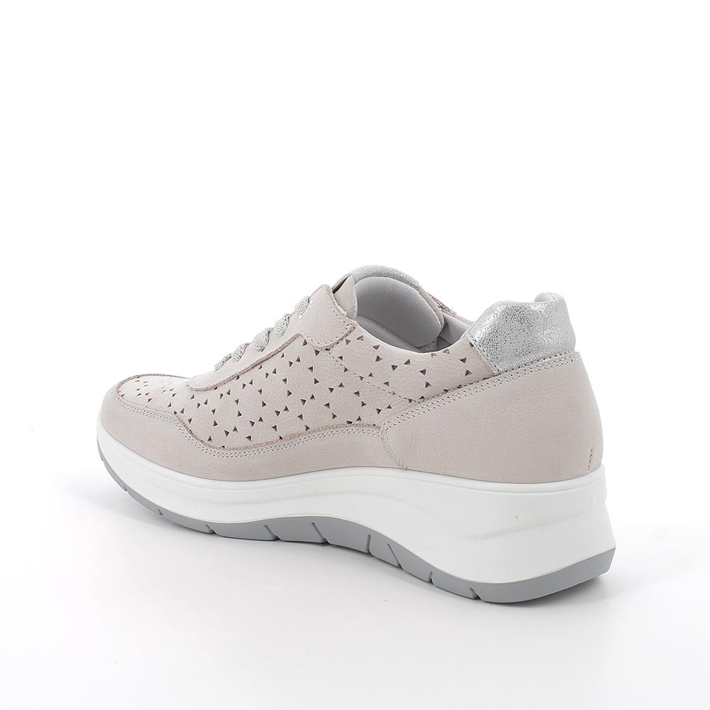Scarpe con zeppa da donna beige e grigio con lacci