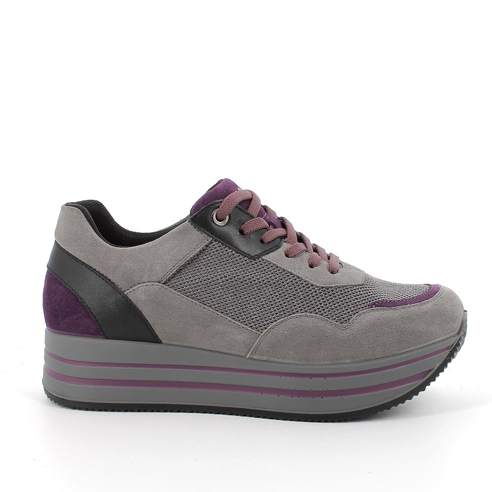 Sneakers con zeppa da donna grigio chiaro-grigio
