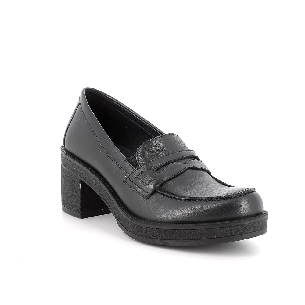 Mocassini con tacco in pelle da donna nero