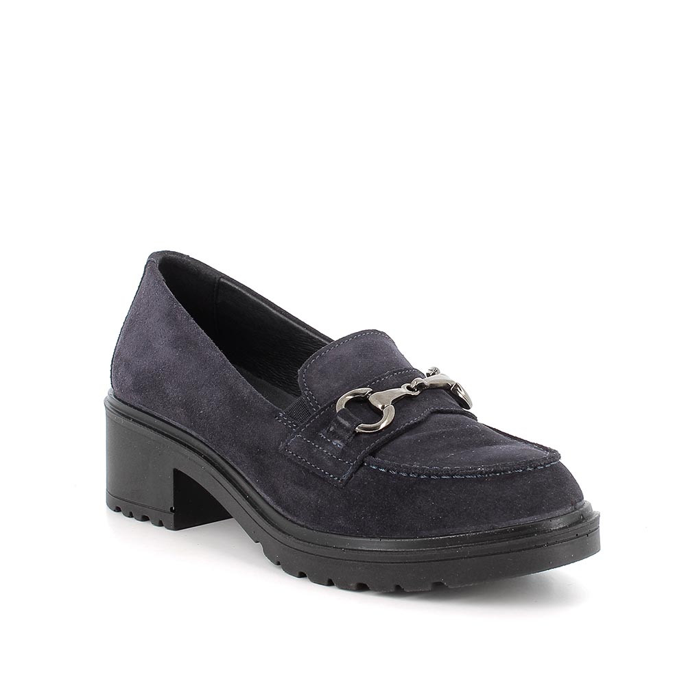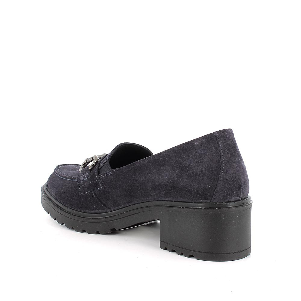 Mocassino in pelle, con tacco. Elastici per facilitare la calzata. Vaschetta e morsetto ornamentale. Adatto ad ogni occasione, con gonna o pantaloni. Sottopiede estraibile in pelle.