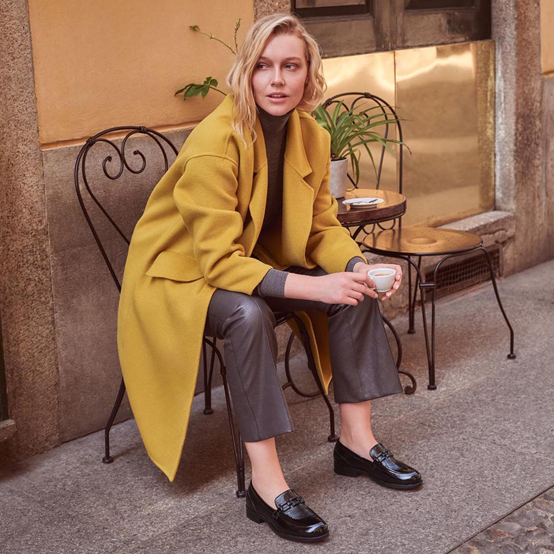 Mocassini dal tacco basso, un classico city-urban, rivisitato con il morsetto ornamentale, in pelle.